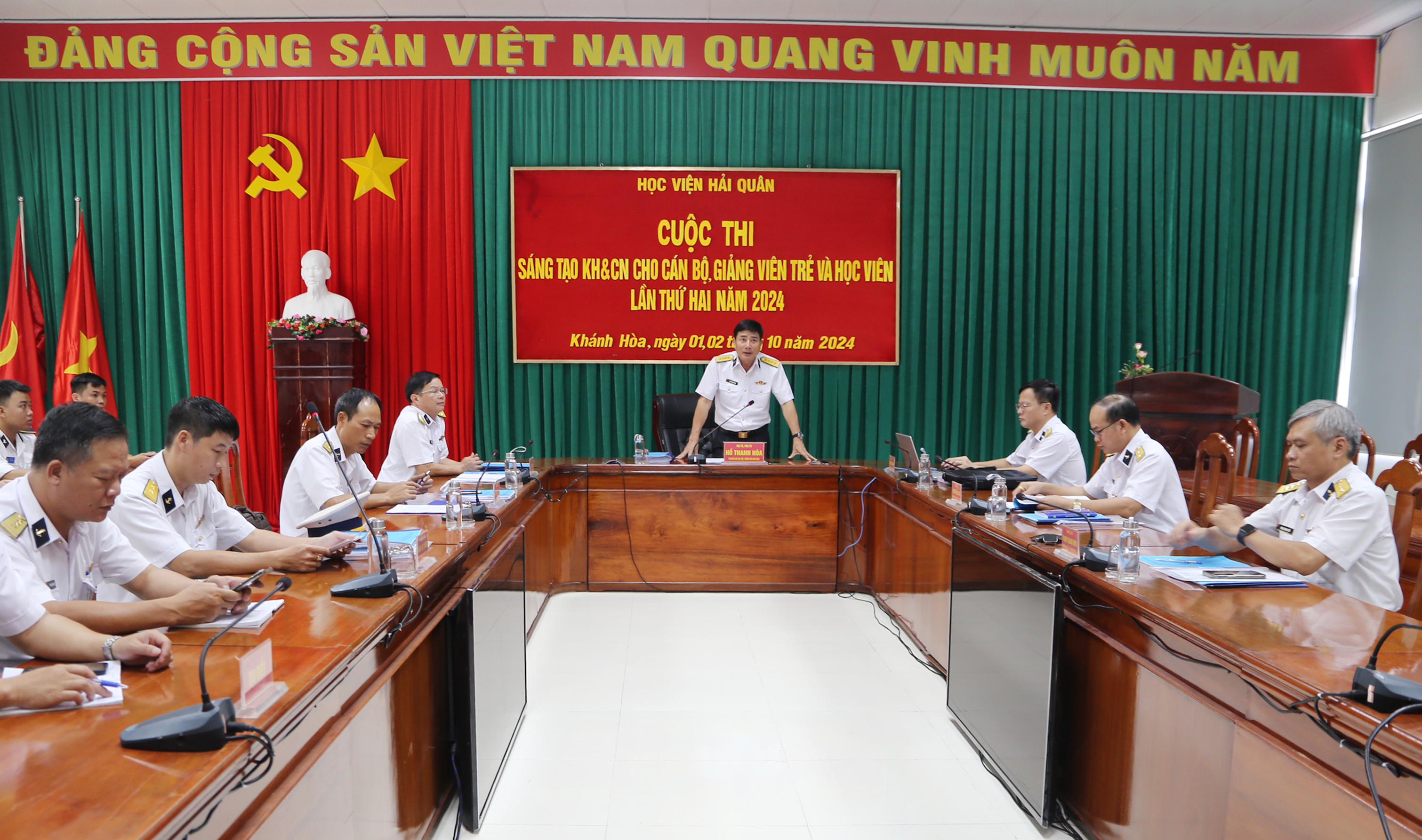 Ngày 1 và 2/10, tại TP. Nha Trang, tỉnh Khánh Hòa, Học viện Hải quân tổ chức cuộc thi sáng tạo khoa học công nghệ (KHCN) cho cán bộ, giảng viên trẻ và học viên lần thứ hai năm 2024. Đại tá, PGS, TS Hồ Thành Hòa, Phó Giám đốc Học viện, Trưởng ban tổ chức cuộc thi chủ trì.