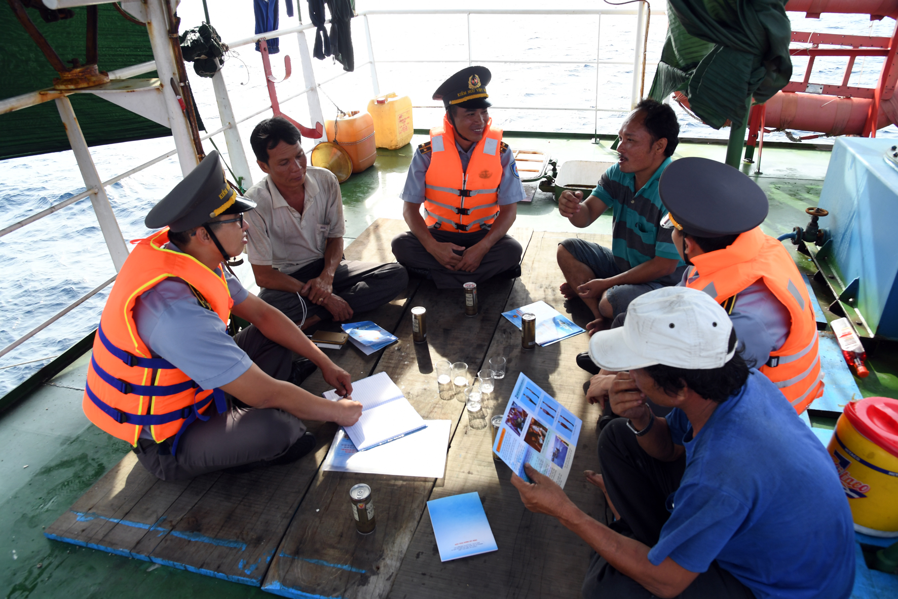 Mỗi lần chuẩn bị cho chuyến đi biển, ngoài bảo đảm tốt công tác hậu cần, kỹ thuật thì cán bộ, nhân viên các tàu kiểm ngư thuộc Chi đội Kiểm ngư số 4 còn chuẩn bị đầy đủ tài liệu để tuyên truyền pháp luật, hướng dẫn khai thác hải sản bền vững đến ngư dân. Bộ tài liệu được biên soạn dưới dạng hỏi-đáp giúp bà con dễ nắm bắt, tiếp thu. Đồng chí Nguyễn Minh Lành, cán bộ Chi đội Kiểm ngư số 4 cho biết: "Trên biển, chúng tôi thực hiện tốt chức năng, nhiệm vụ theo luật định đồng thời luôn đồng hành với ngư dân từ việc tuyên truyền, phổ biến pháp luật đến hỗ trợ bà con về hậu cần, kỹ thuật, cứu nạn...".