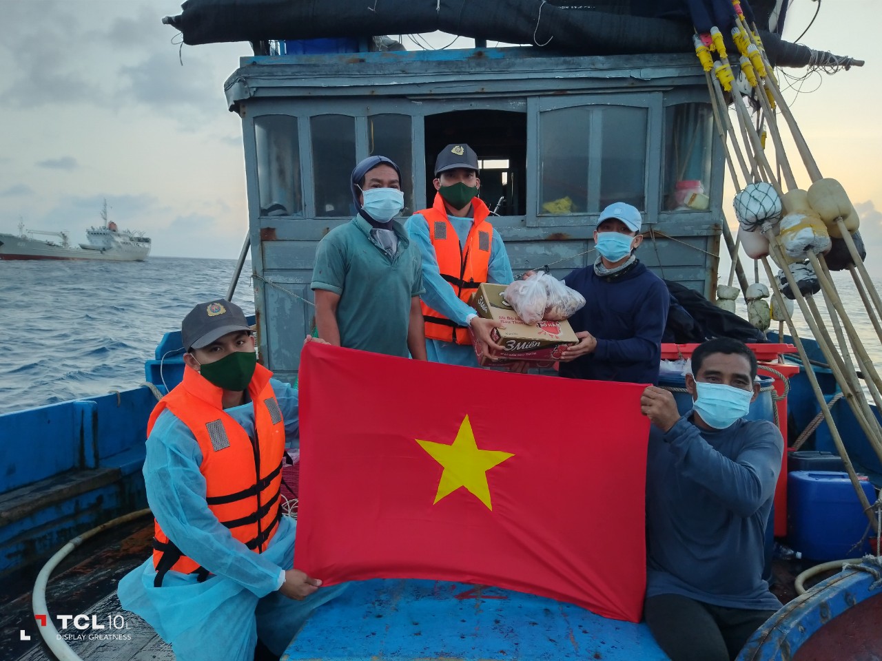 Chi đội tặng cờ Tổ quốc cho ngư dân tại khu vực biển Trường Sa