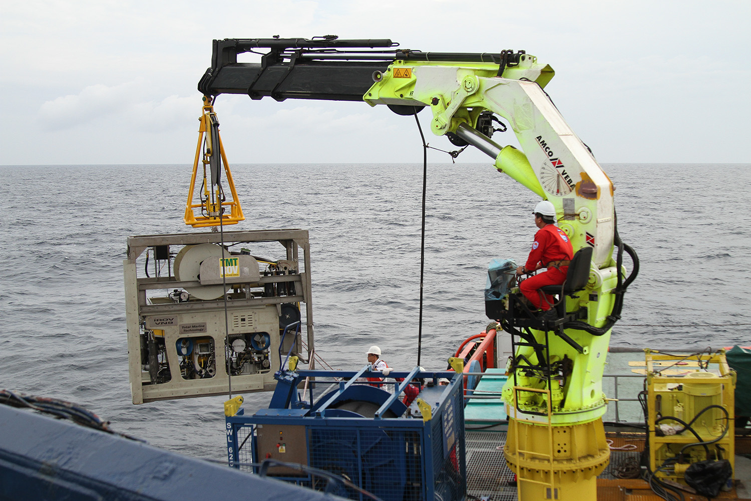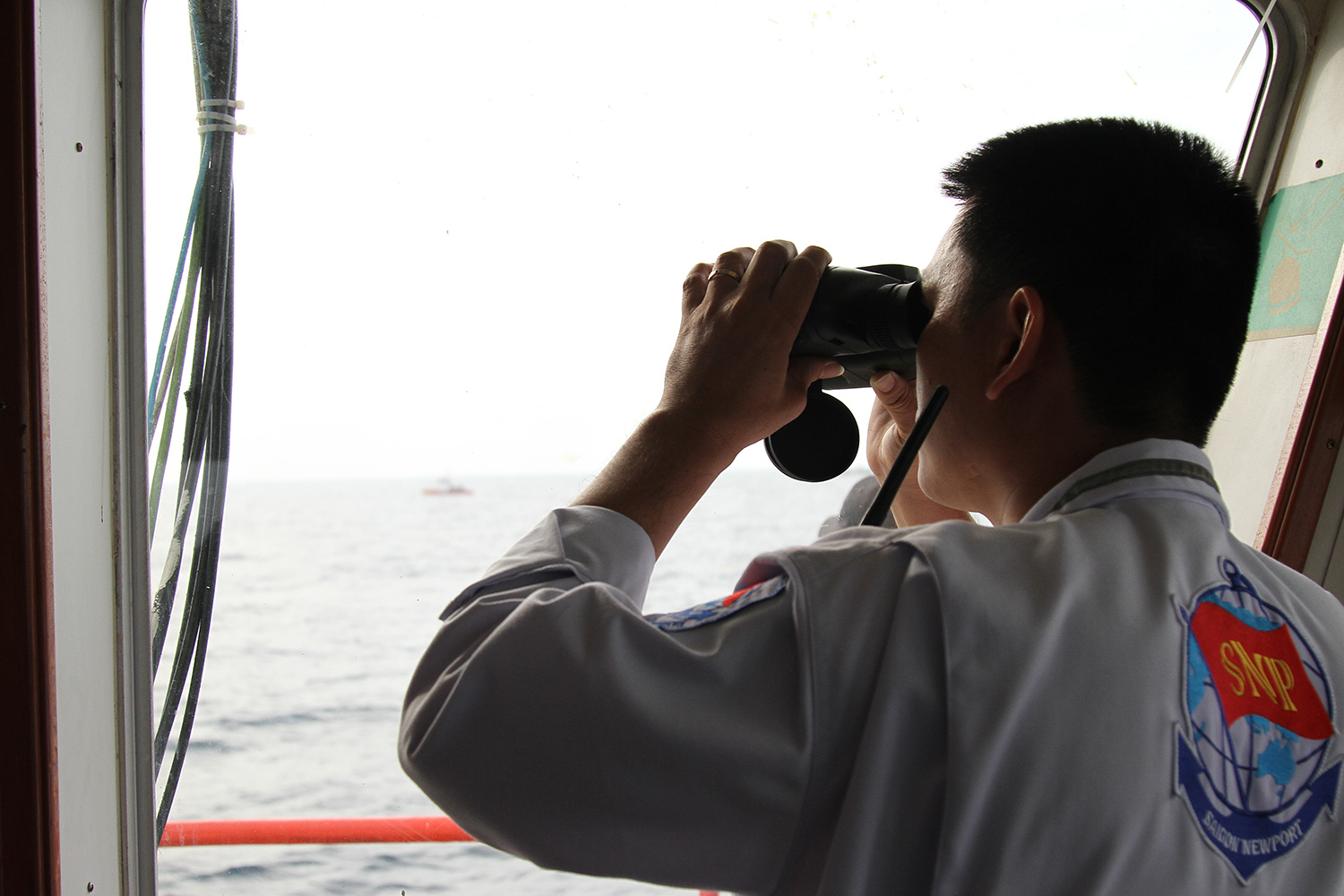 Thủy thủ Tàu Tân cảng 69 xác định vị trí neo để chuẩn bị thả IROV