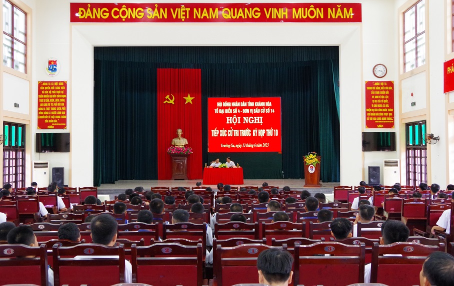 Chiều 13/6, tại Khánh Hòa, các đồng chí đại biểu Hội đồng nhân dân (HĐND) tỉnh Khánh Hòa gồm: Phan Gia Ngọc, Chánh Văn phòng đoàn đại biểu Quốc hội và HĐND tỉnh; Lương Xuân Giáp, Chủ tịch HĐND huyện Trường Sa đã có buổi tiếp xúc với 220 cử tri huyện Trường Sa trước kỳ họp thứ 10, nhiệm kỳ 2021-2026.