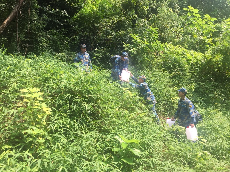 Cán bộ, chiến sĩ Đại đội 20 chuyển nước lên vị trí đóng quân