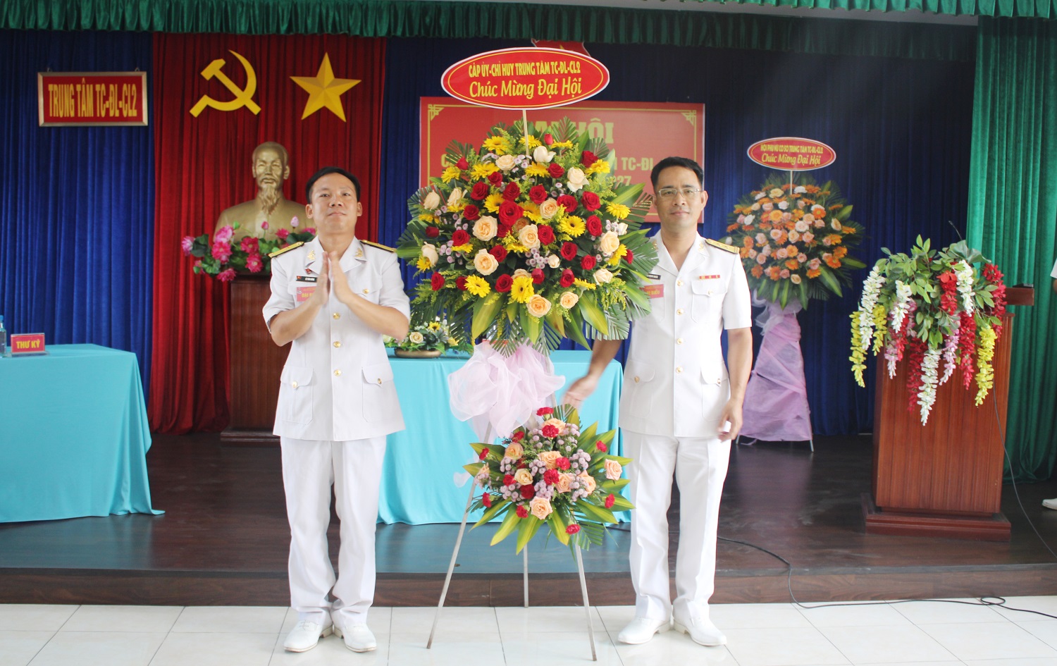 Thủ trưởng Trung tâm tặng hoa chúc mừng