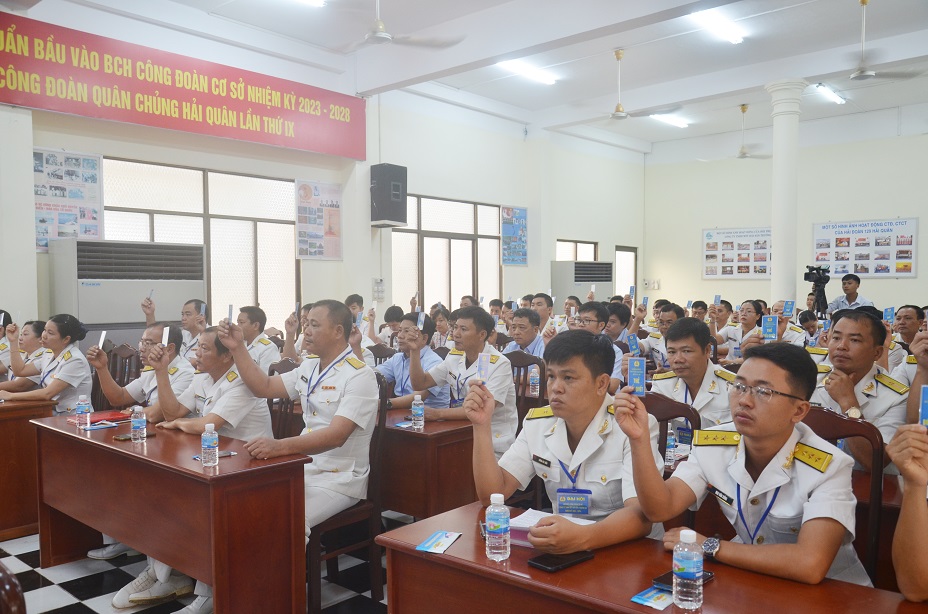 Với phương châm “Đổi mới, dân chủ, đoàn kết, phát triển”, đại hội đã bầu Ban chấp hành Công đoàn cơ sở nhiệm kỳ 2023-2028 gồm 7 đồng chí; bầu đoàn đại biểu dự Đại hội đại biểu Công đoàn Hải quân lần thứ IX (2023-2028) gồm 11 đại biểu chính thức và 1 đại biểu dự khuyết.