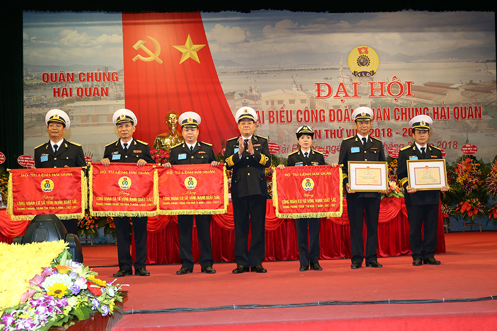Nhân dịp này, Chính ủy Hải quân đã tặng Cờ thưởng thi đua cho 4 tập thể và Bằng khen cho 2 tập thể có thành tích xuất sắc và thành tích tốt trong phong trào công nhân và hoạt động công đoàn 5 năm (2012-2017).