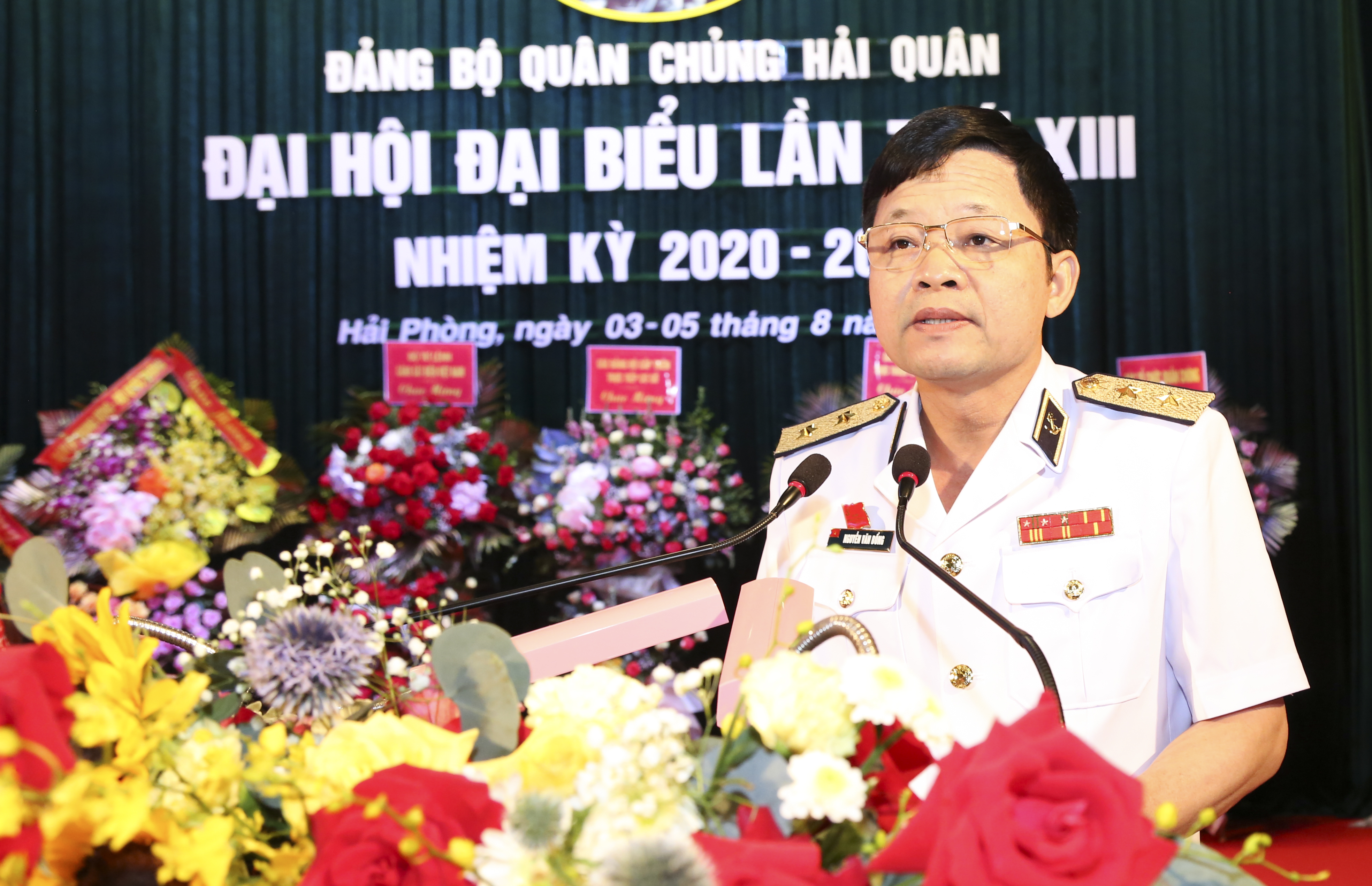 Phát biểu khai mạc đại hội, Trung tướng Nguyễn Văn Bổng, Bí thư Đảng ủy, Chính ủy Quân chủng nhấn mạnh: Với chủ đề “Phát huy sức mạnh tổng hợp, xây dựng Đảng bộ TSVM tiêu biểu; Quân chủng cách mạng, chính quy, tinh nhuệ, hiện đại; thực sự là nòng cốt xây dựng nền quốc phòng toàn dân, thế trận quốc phòng toàn dân trên biển; quản lý, bảo vệ vững chắc chủ quyền biển, đảo Tổ quốc", Đại hội đại biểu Đảng bộ Quân chủng Hải quân lần thứ XIII là đợt sinh hoạt chính trị sâu rộng, kiểm điểm kết quả thực hiện Nghị quyết Đại hội Đảng bộ Quân chủng lần thứ XII; làm rõ các ưu điểm, khuyết điểm, nguyên nhân, rút ra bài học kinh nghiệm; quyết định phương hướng, nhiệm vụ, mục tiêu và các chủ trương, giải pháp chủ yếu để lãnh đạo thực hiện nhiệm vụ và các khâu đột phá trong nhiệm kỳ tới, xây dựng Đảng bộ vững mạnh về chính trị, tư tưởng, tổ chức và đạo đức, hoàn thành xuất sắc nhiệm vụ được giao.