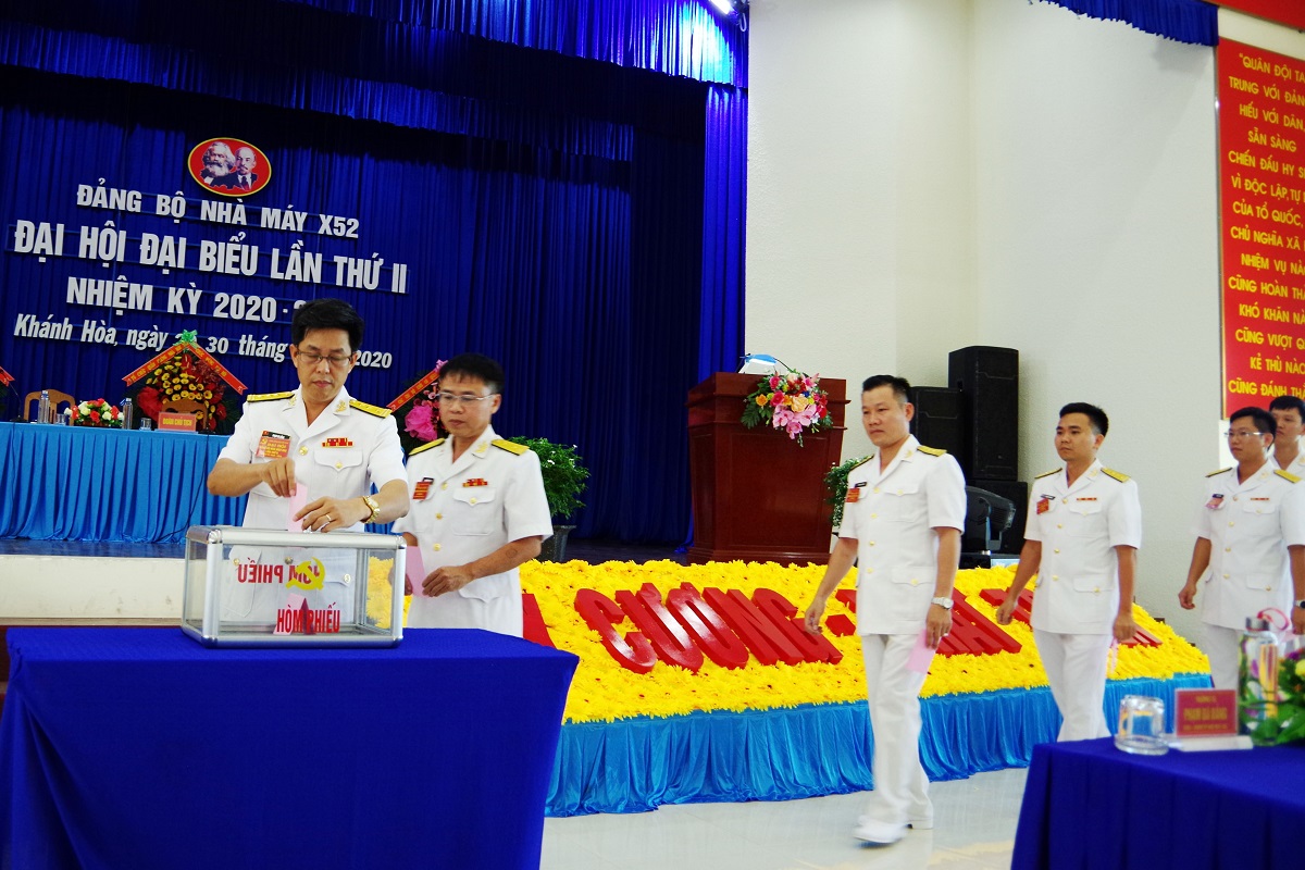 Đại hội bầu 9 đồng chí vào Ban chấp hành Đảng bộ Nhà máy nhiệm kỳ 2020-2025 và bầu đoàn đại biểu gồm 19 đồng chí (2 dự khuyết) đi dự Đại hội đại biểu Đảng bộ Cục Kỹ thuật Hải quân lần thứ XII.