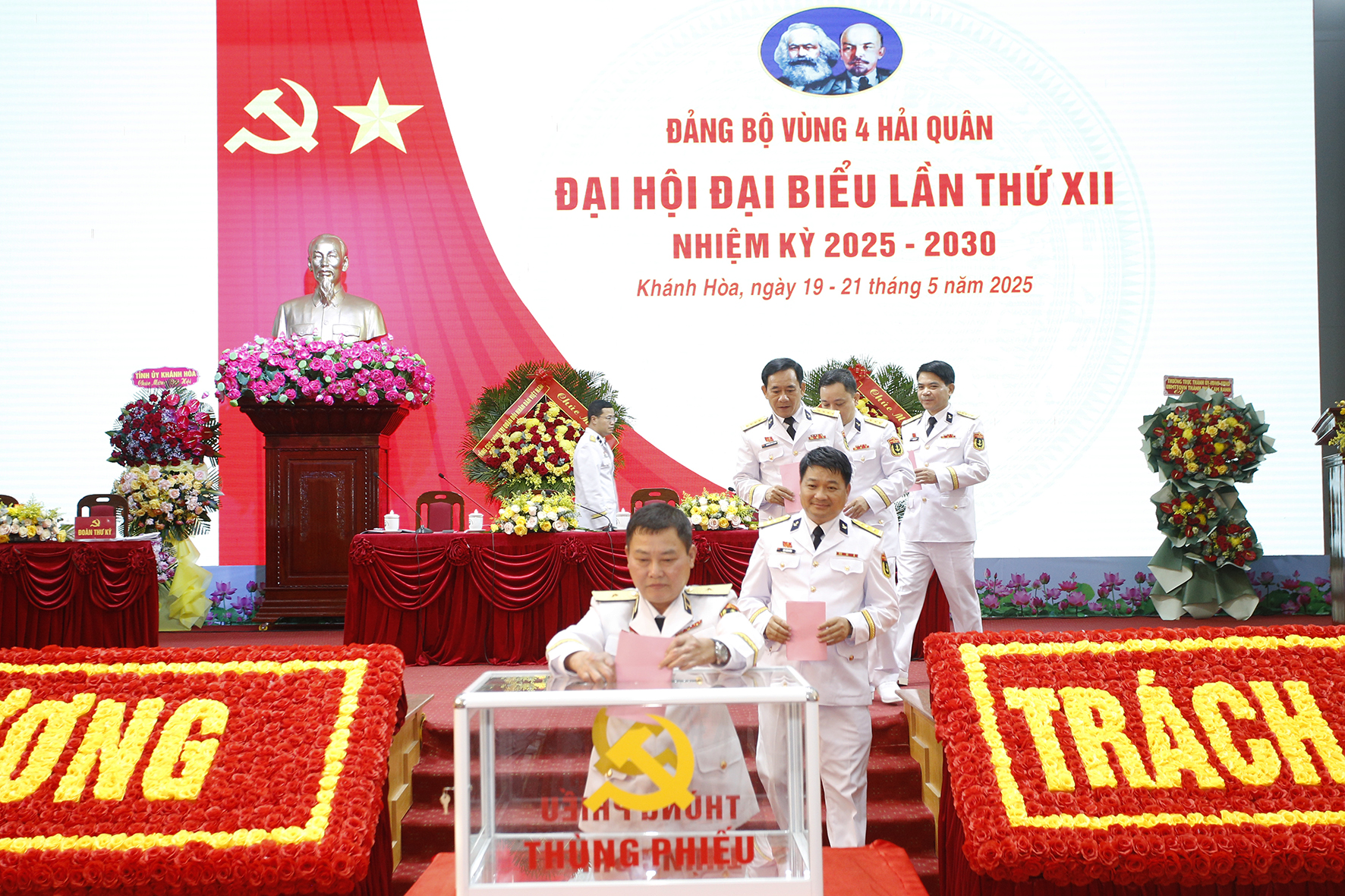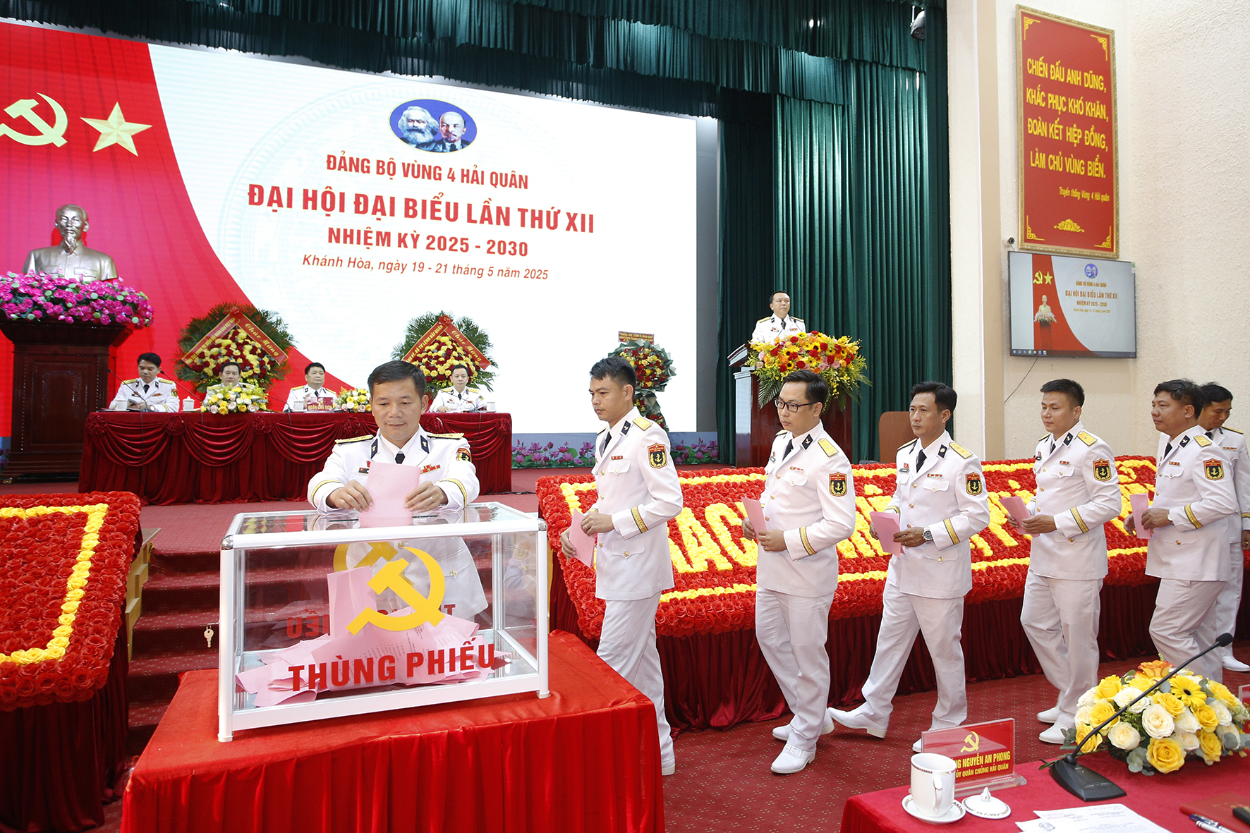 Chiều 20/5, trong chương trình làm việc của Đại hội đại biểu Đảng bộ Vùng 4 Hải quân lần thứ XII, nhiệm kỳ 2025-2030, đã tiến hành các nội dung thảo luận, kết luận các văn kiện của Đảng ủy Vùng, dự thảo các văn kiện trình Đại hội lần thứ XIV của Đảng và thảo luận dự thảo báo cáo chính trị của Đảng ủy Quân chủng Hải quân trình Đại hội Đảng bộ Quân chủng lần thứ XIV. Đại hội cũng tiến hành bầu Ban chấp hành Đảng bộ Vùng 4 nhiệm kỳ 2025-2030.