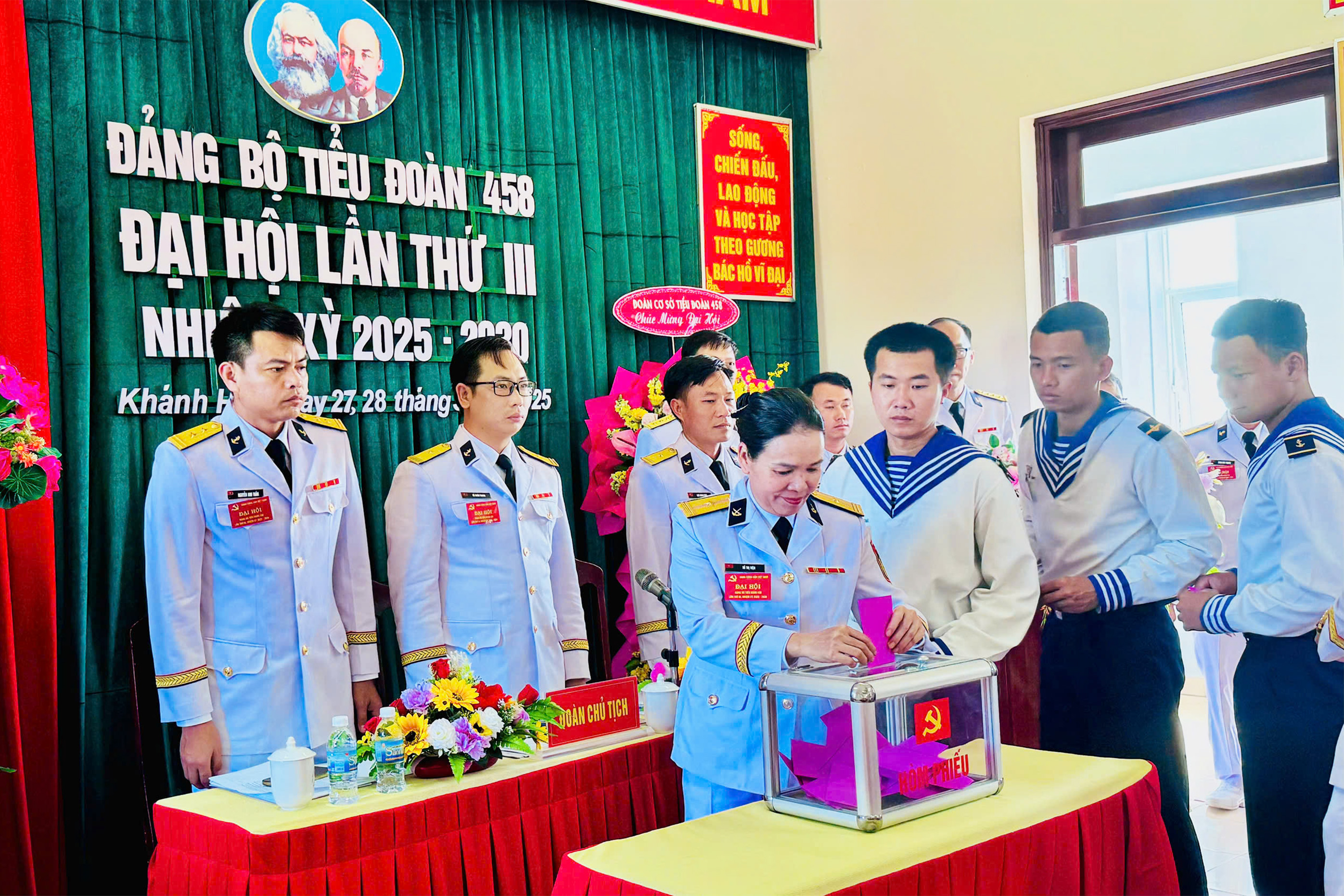 Ngày 27 và 28/3, tại thành phố Cam Ranh, tỉnh Khánh Hoà, Đảng bộ Tiểu đoàn 458, Vùng 4 Hải quân tổ chức Đại hội lần thứ III, nhiệm kỳ 2025-2030. Thượng tá Phạm Anh Tuấn, Phó Tư lệnh, Tham mưu trưởng Vùng dự, chỉ đạo.
