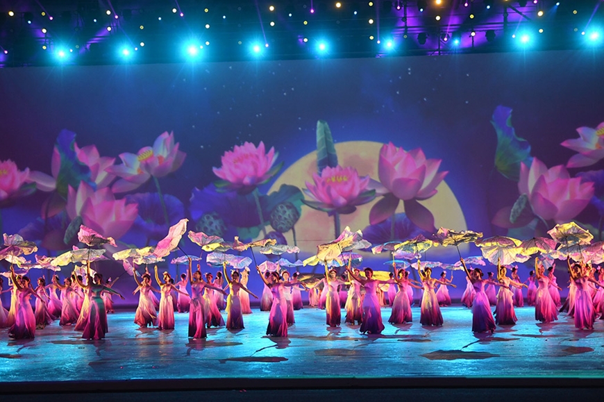 Tiếp đó, "Hồn sen Việt" là màn trình diễn múa nghệ thuật với hàng nghìn diễn viên, nghệ sĩ tham gia kết hợp với công nghệ đồ hoạ để giới thiệu biểu tượng của SEA Games 31, tạo nên sắc màu lung linh và huyền ảo.
