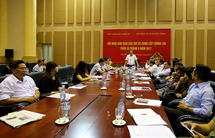 Chiều 24-8, tại Đài Phát thanh và Truyền hình Hải Phòng, Ban Tuyên giáo Thành ủy phối hợp với Sở Thông tin và Truyền thông tổ chức hội nghị giao ban báo chí và cung cấp thông tin tuần 35 tháng 8 năm 2017. Đồng chí Nguyễn Hữu Doãn, Ủy viên Ban Thường vụ Thành ủy, Trưởng Ban Tuyên giáo Thành ủy chủ trì hội nghị.
