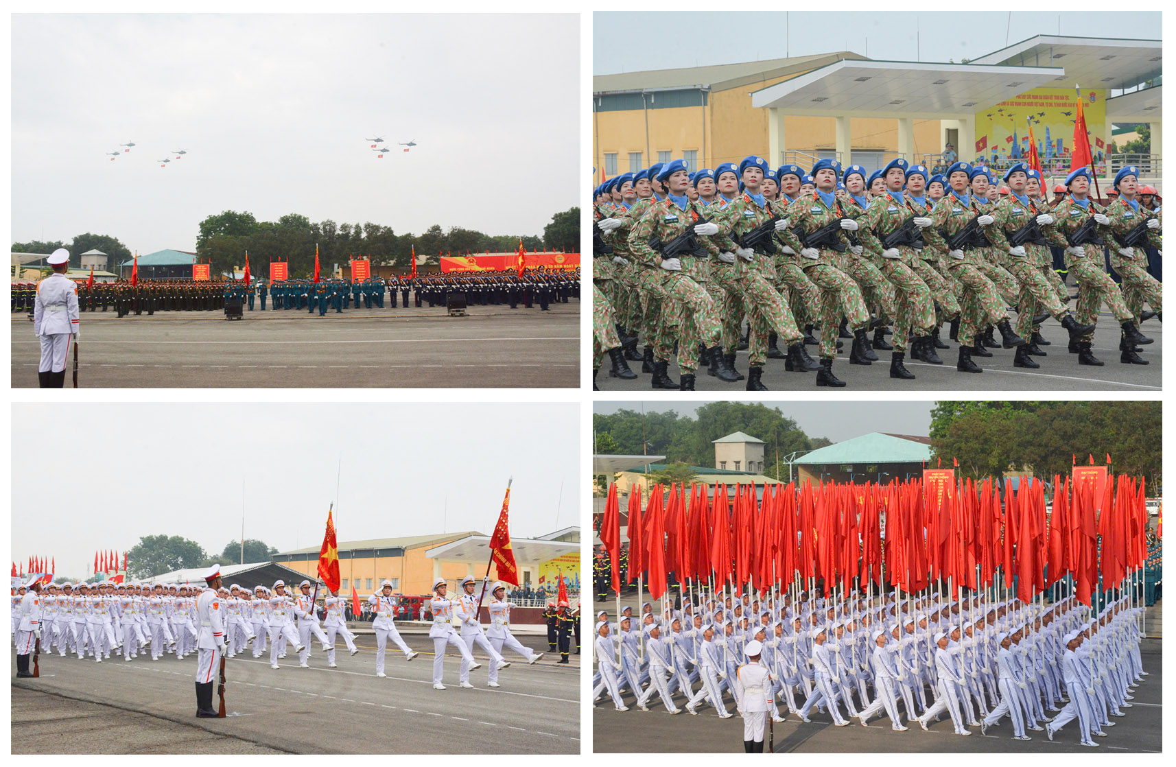 Tham gia tổng hợp luyện có các lực lượng Quân đội, Công an, Dân quân tự vệ và lực lượng Không quân bay chào mừng.