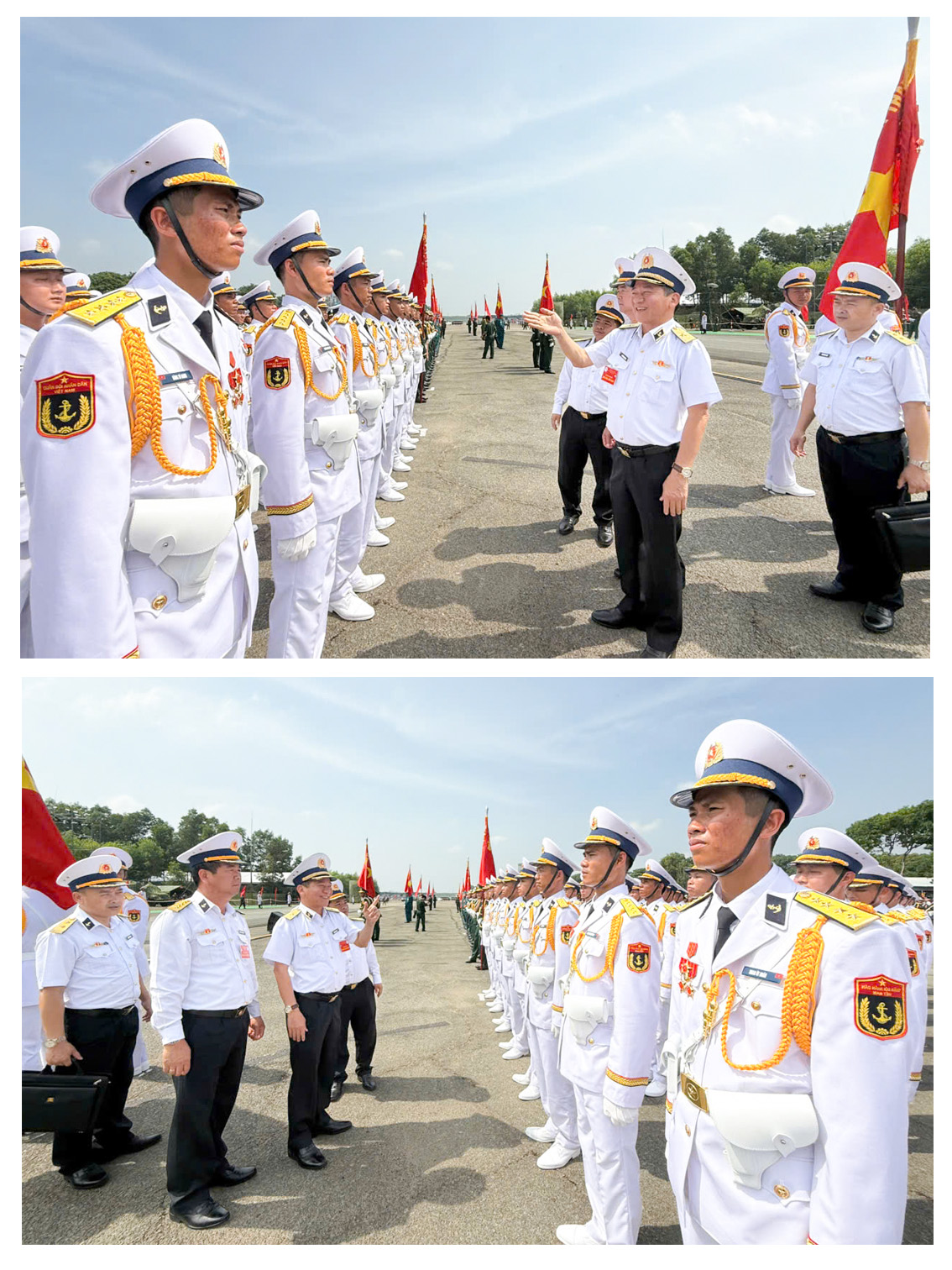 Sau khi hoàn thành buổi tổng hợp luyện, Chuẩn Đô đốc Nguyễn Đình Hùng cùng thủ trưởng Bộ Tham mưu và các cơ quan chức năng Quân chủng Hải quân đã thăm hỏi, động viên cán bộ, chiến sĩ thuộc các khối của Hải quân tham gia diễu binh, diễu hành.