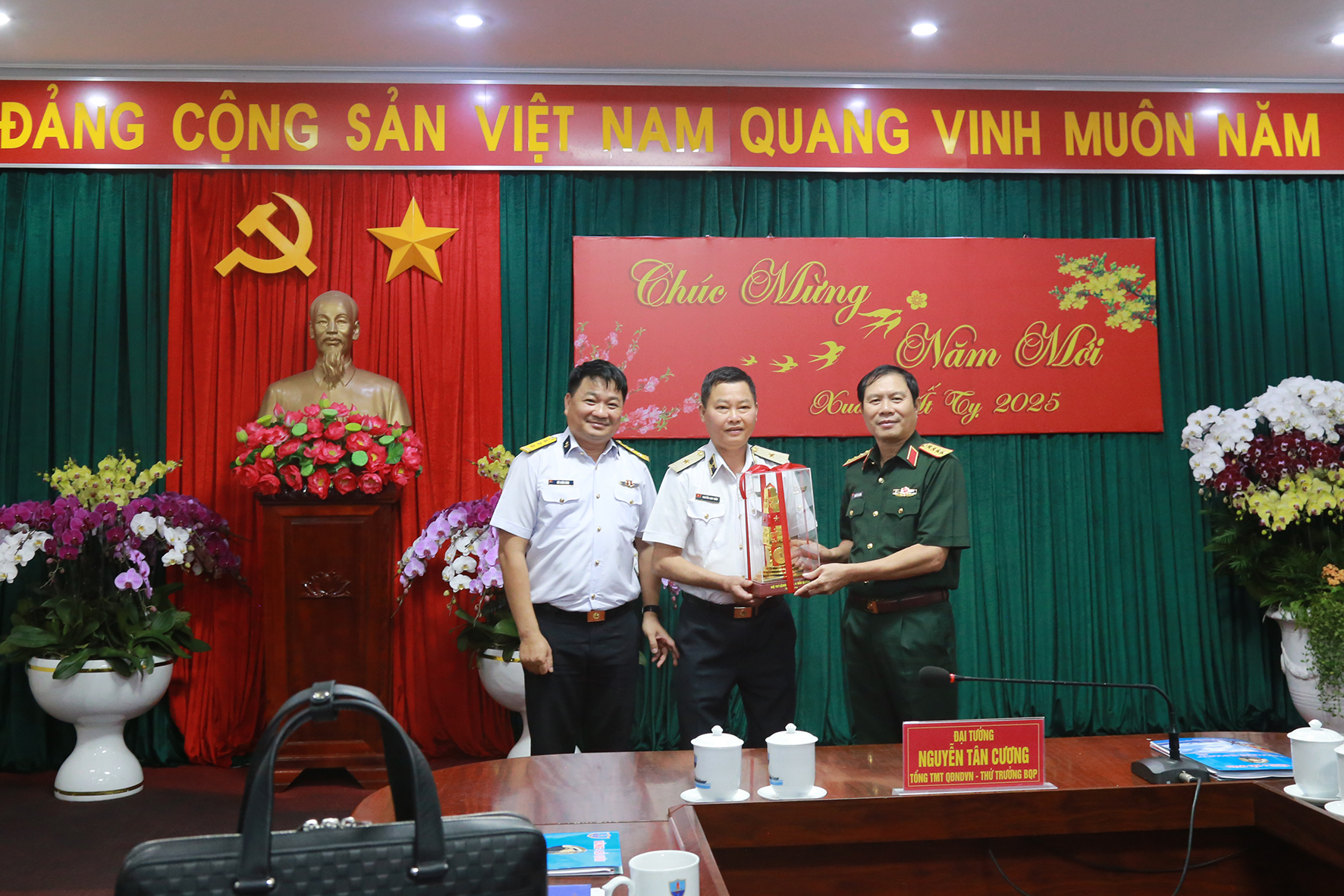 Chiều 16/1, tại TP.Cam Ranh, tỉnh Khánh Hòa, đoàn công tác của Bộ Quốc phòng do Đại tướng Nguyễn Tân Cương, Ủy viên Trung ương Đảng, Ủy viên Thường vụ Quân ủy Trung ương, Tổng Tham mưu trưởng Quân đội nhân dân (QĐND) Việt Nam, Thứ trưởng Bộ Quốc phòng làm trưởng đoàn đã đến kiểm tra, chúc tết các đơn vị Hải quân đóng quân trong Căn cứ quân sự Cam Ranh.