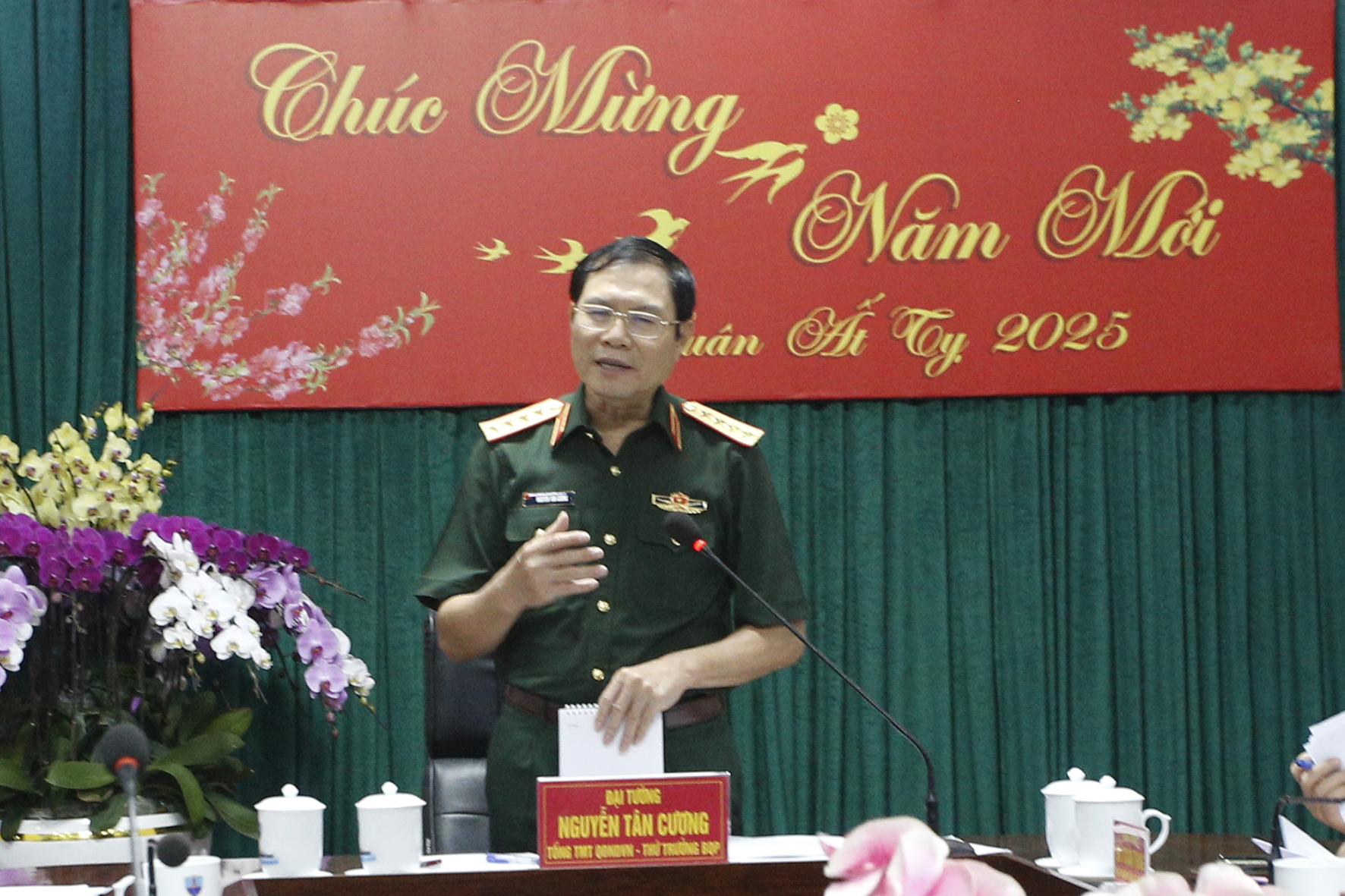 Nhân dịp chuẩn bị đón Tết Ất Tỵ năm 2025, thay mặt Quân ủy Trung ương, Bộ Quốc phòng, Đại tướng Nguyễn Tân Cương gửi lời chúc mừng năm mới đến cán bộ, chiến sĩ các đơn vị đồng thời yêu cầu tổ chức cho bộ đội vui xuân, đón tết vui tươi, lành mạnh, đoàn kết, sẵn sàng chiến đấu cao, bảo đảm an toàn về mọi mặt.