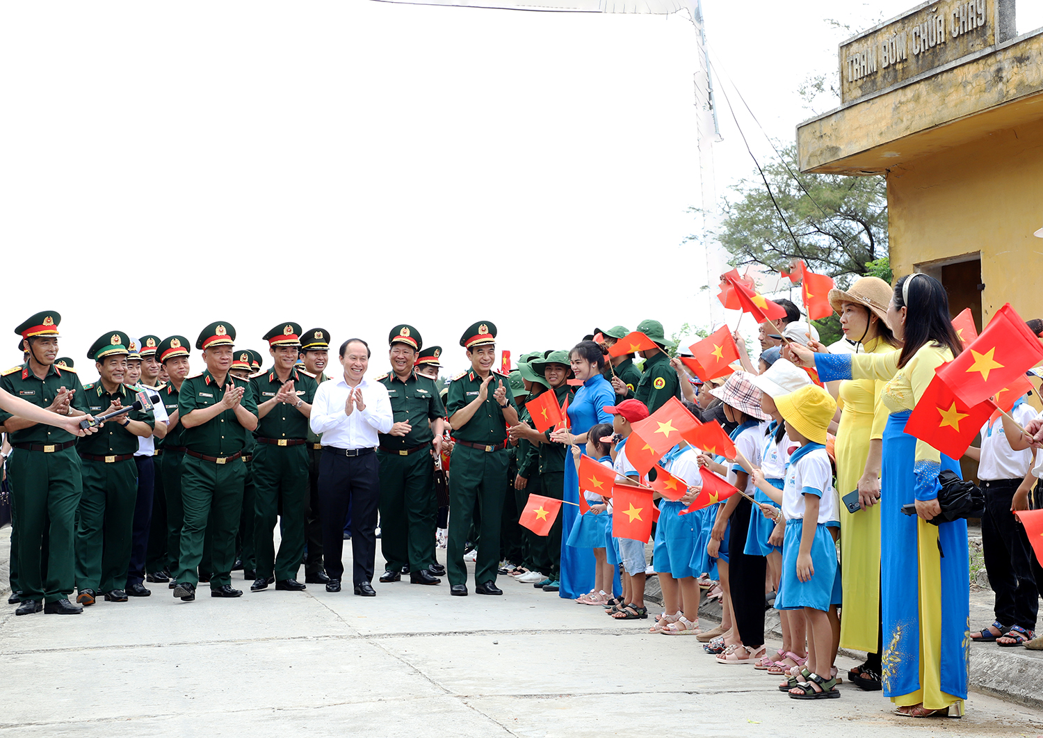 Cán bộ, chiến sĩ và nhân dân huyện đảo Bạch Long Vĩ đón Đại tướng Phan Văn Giang và đoàn công tác