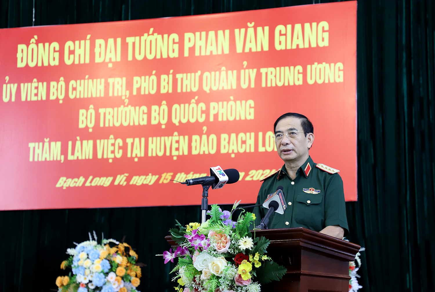 Nói chuyện với cấp ủy, chính quyền, quân và dân trên đảo, Đại tướng Phan Văn Giang nhấn mạnh: Bạch Long Vĩ với điều kiện tự nhiên đa dạng, là huyện đảo xa bờ nhất trong Vịnh Bắc Bộ. Mặc dù còn nhiều khó khăn song dưới sự lãnh đạo của Thành ủy Hải Phòng, Đảng bộ, chính quyền, quân và dân huyện đảo đã nêu cao tinh thần đoàn kết, thực hiện hiệu quả nhiệm vụ phát triển kinh tế-xã hội kết hợp với củng cố quốc phòng, an ninh.