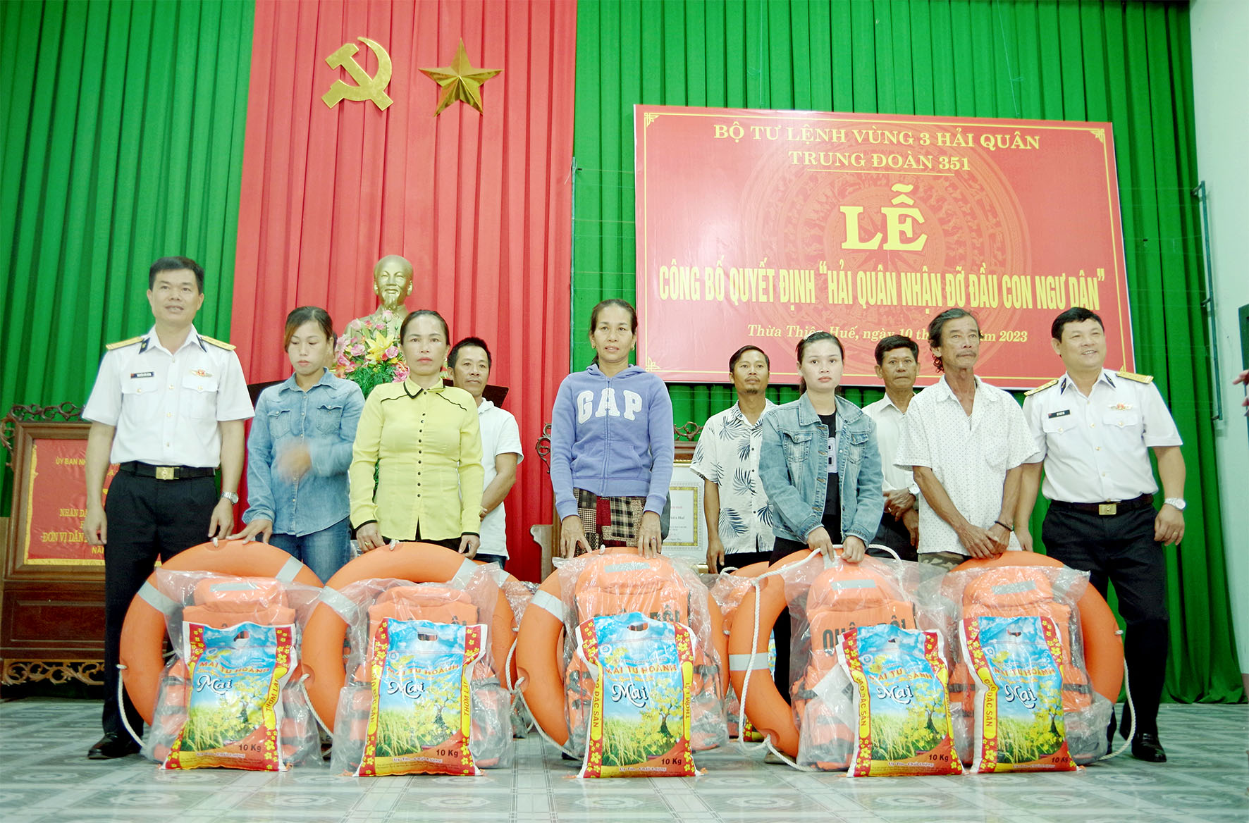 Đại diện Trung đoàn 351 tặng quà ngư dân xã Điền Hòa, huyện Phong Điền, tỉnh Thừa Thiên Huế