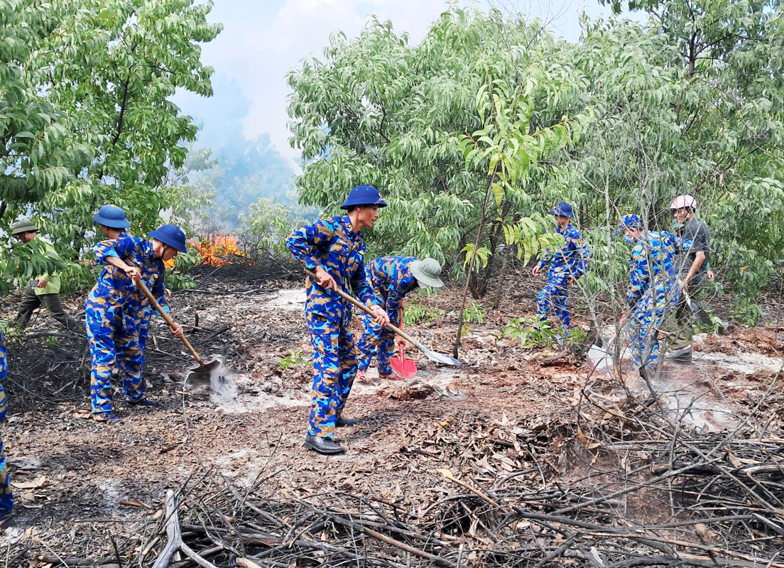 Cán bộ, chiến sĩ Trạm ra đa 3511 tham gia chữa cháy rừng tại thôn Hải Đông, xã Phong Hải, huyện Phong Điền, tỉnh Thừa Thiên Huế