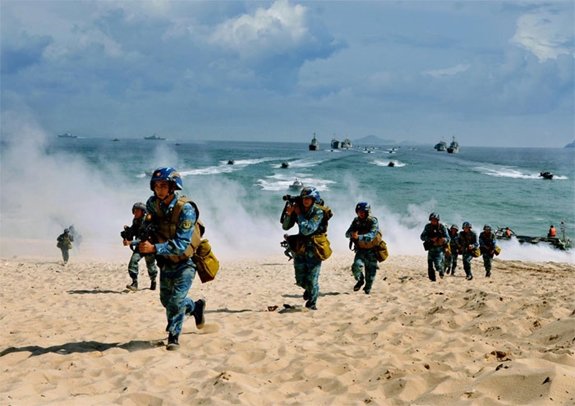 Huấn luyện hiệp đồng đổ bộ đường biển. Ảnh: Phóng viên