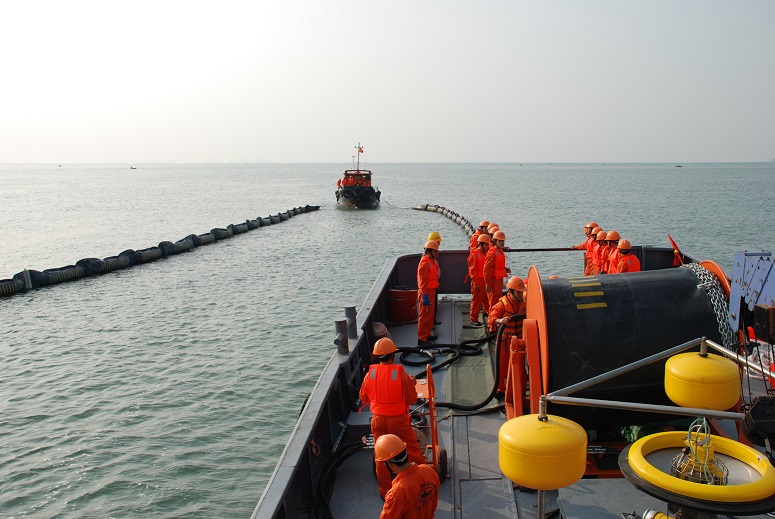 Tàu của Công ty 128 huấn luyện chống tràn dầu trên biển