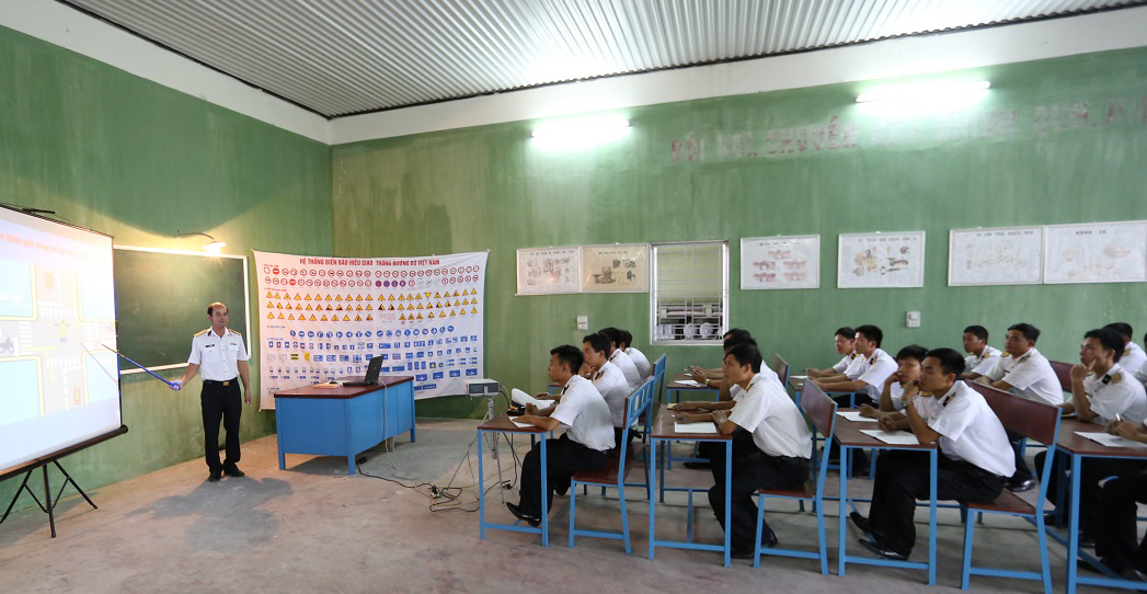 Một buổi bổ sung kiến thức về Luật Giao thông cho lái xe Tiểu đoàn 45, Cục Hậu cần. Ảnh: Duy Khánh