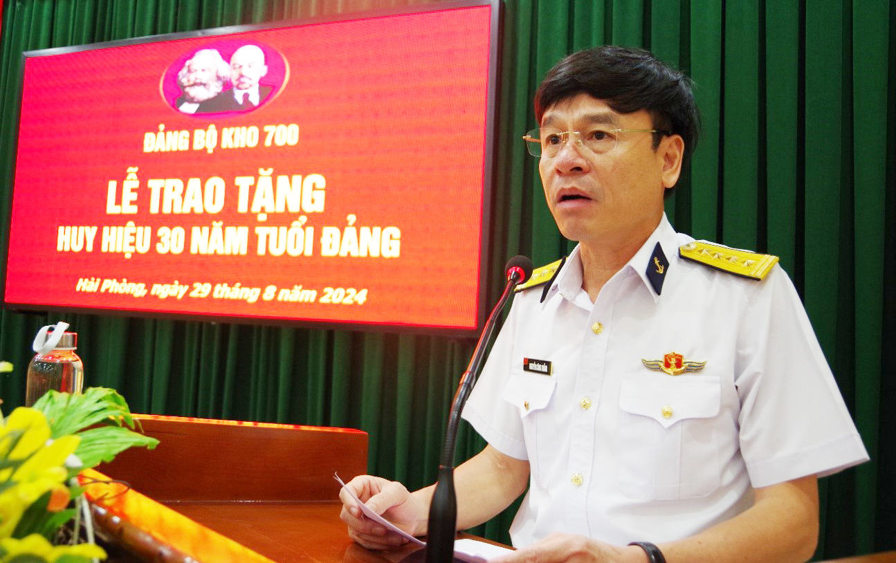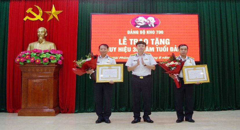 Sáng 29/8, tại Hải Phòng, Đảng bộ Kho 700, Cục Hậu cần Hải quân tổ chức Lễ trao tặng Huy hiệu 30 năm tuổi Đảng đối với đồng chí Thượng tá Nguyễn Tân Cảnh và đồng chí Trung tá QNCN Phạm Bá Vũ là đảng viên thuộc Đảng bộ Kho. Đại tá Nguyễn Công Thắng, Bí thư Đảng ủy, Chính ủy Cục Hậu cần tới dự.