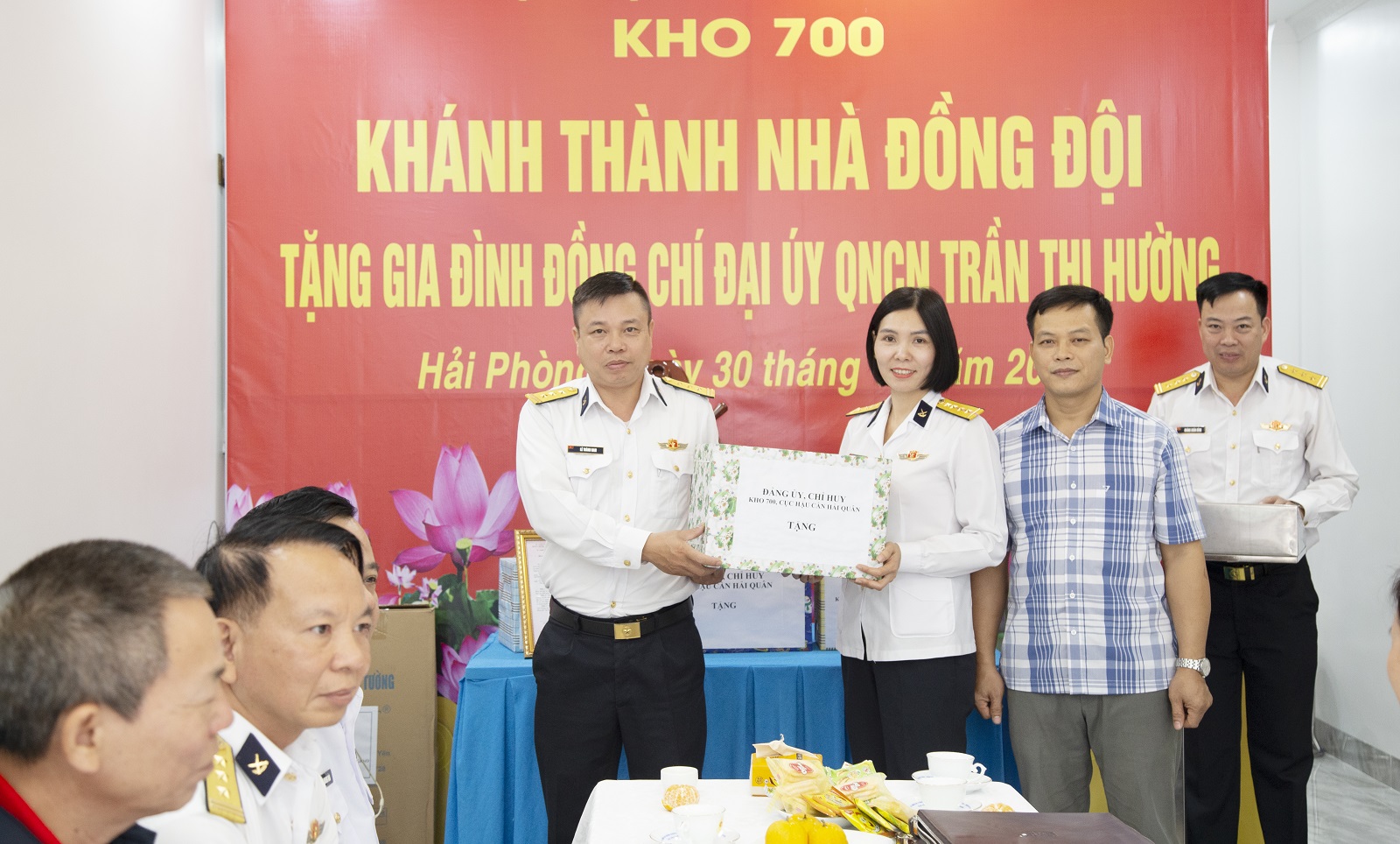 Chỉ huy Kho 700 tặng quà gia đình quân nhân tại lễ khánh thành nhà đồng đội