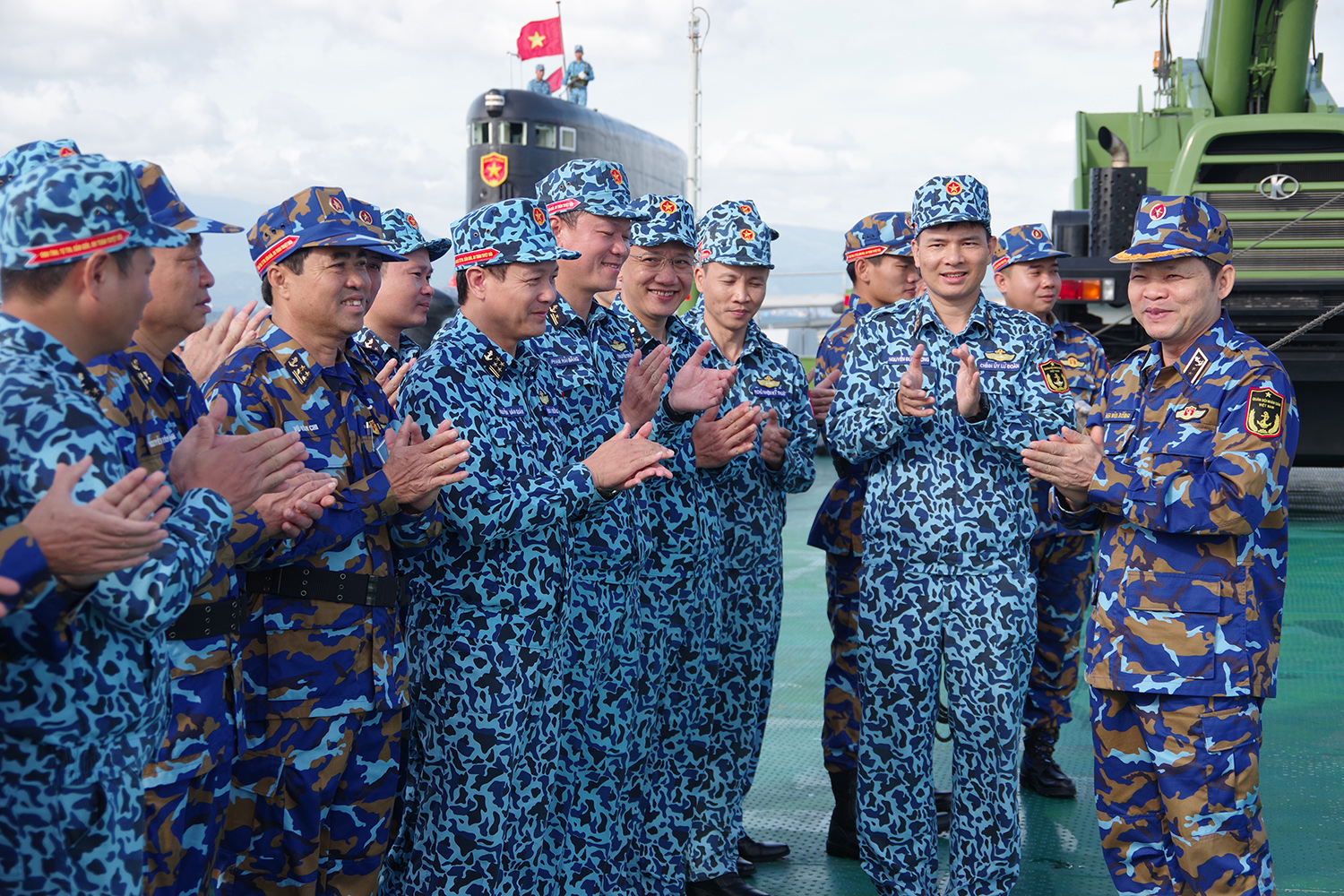 Thủ trưởng Bộ Tư lệnh Hải quân động viên cán bộ, thủy thủ Tàu 185 - Khánh Hòa. Ảnh: Lê Hải