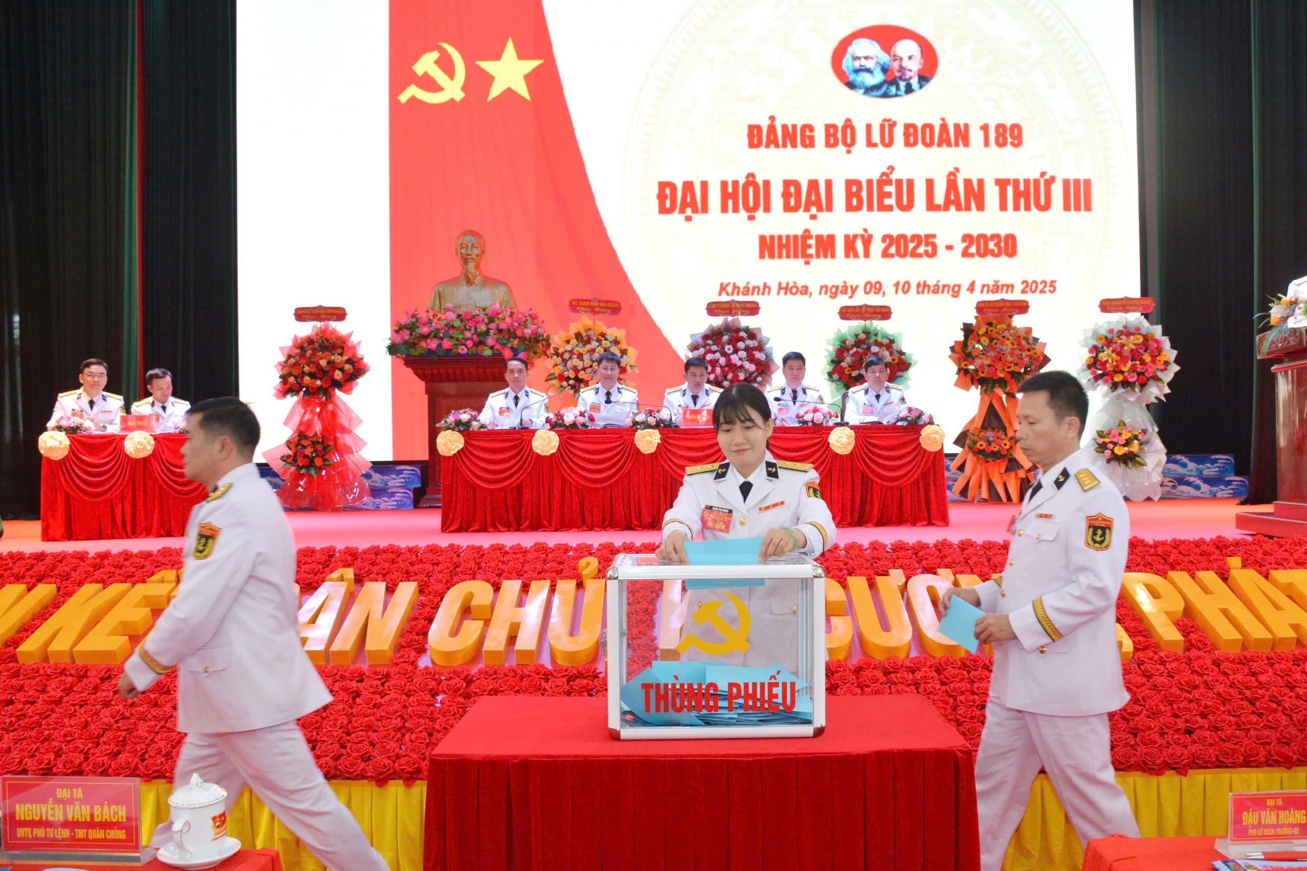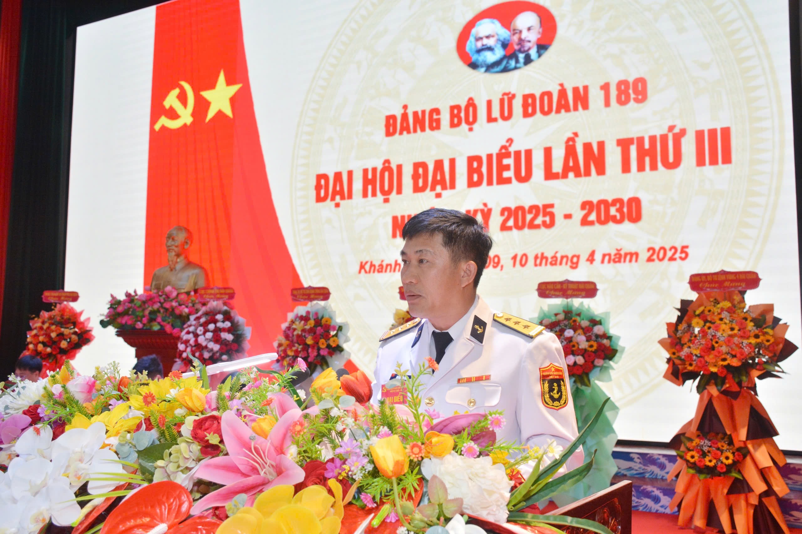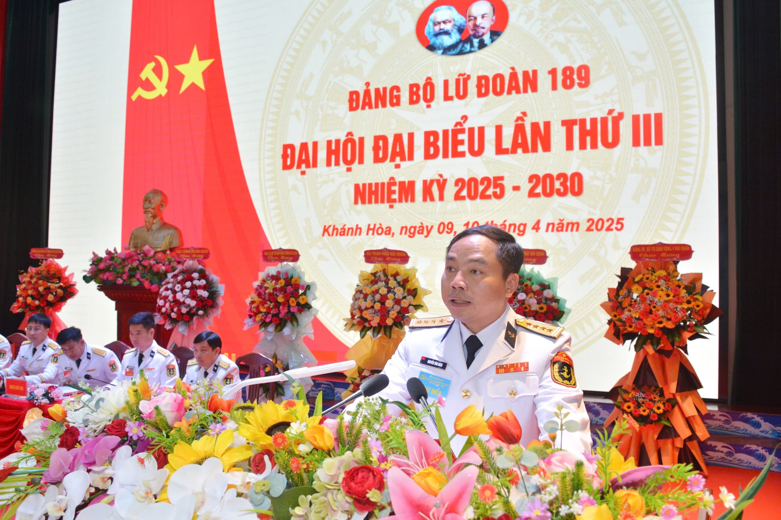 Phát biểu chỉ đạo tại đại hội, đồng chí Phó Tư lệnh, Tham mưu trưởng Hải quân đã biểu dương những thành tích xuất sắc mà Lữ đoàn 189 đã đạt được trong nhiệm kỳ vừa qua. Đồng thời yêu cầu nhiệm kỳ 2025-2030, Đảng bộ Lữ đoàn cần quán triệt và thực hiện tốt quan điểm, đường lối của Đảng và cấp ủy các cấp về chủ trương mới, định hướng lớn trong công tác quân sự, quốc phòng, vận dụng phù hợp vào thực tế nhiệm vụ của Lữ đoàn.