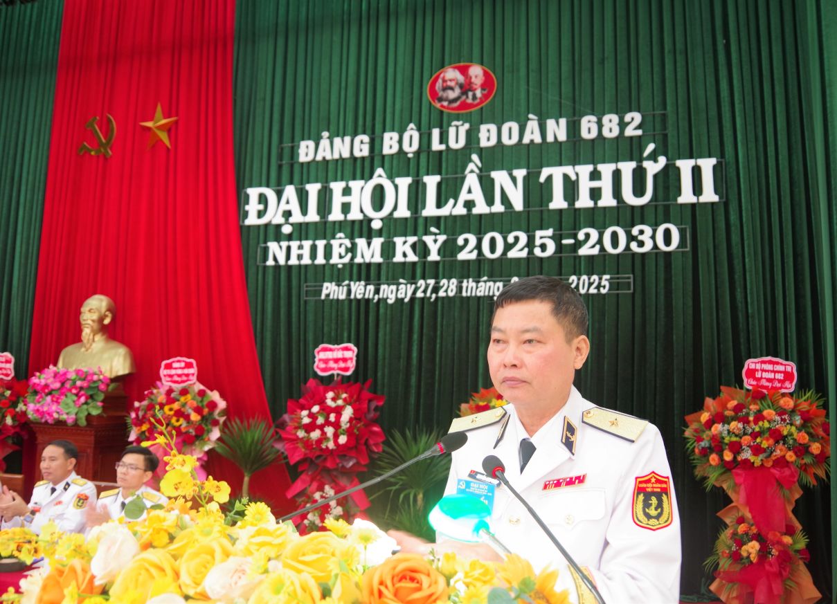 Ngày 28/3, tại TP.Tuy Hòa, tỉnh Phú Yên, Đảng bộ Lữ đoàn 682, Vùng 4 Hải quân tổ chức Đại hội lần thứ II, nhiệm kỳ 2025-2030. Chuẩn Đô đốc Nguyễn Anh Tuấn, Tư lệnh Vùng 4 dự và chỉ đạo.