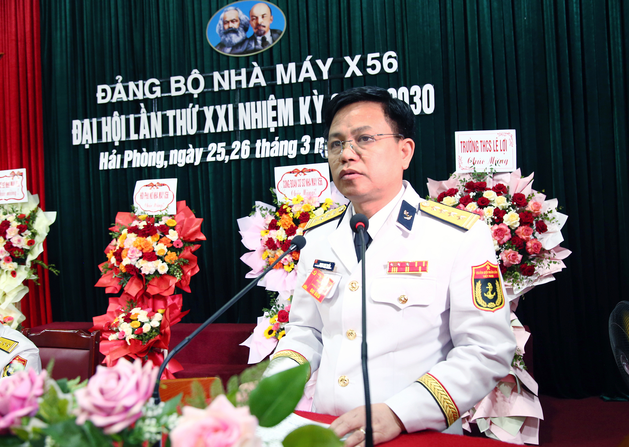 Phát biểu chỉ đạo, thay mặt Đảng ủy, thủ trưởng Cục Hậu cần-Kỹ thuật, Đại tá Phạm Kim Tuyến đã biểu dương và chúc mừng những thành tích mà Đảng bộ Nhà máy X56 đã đạt được trong nhiệm kỳ vừa qua.