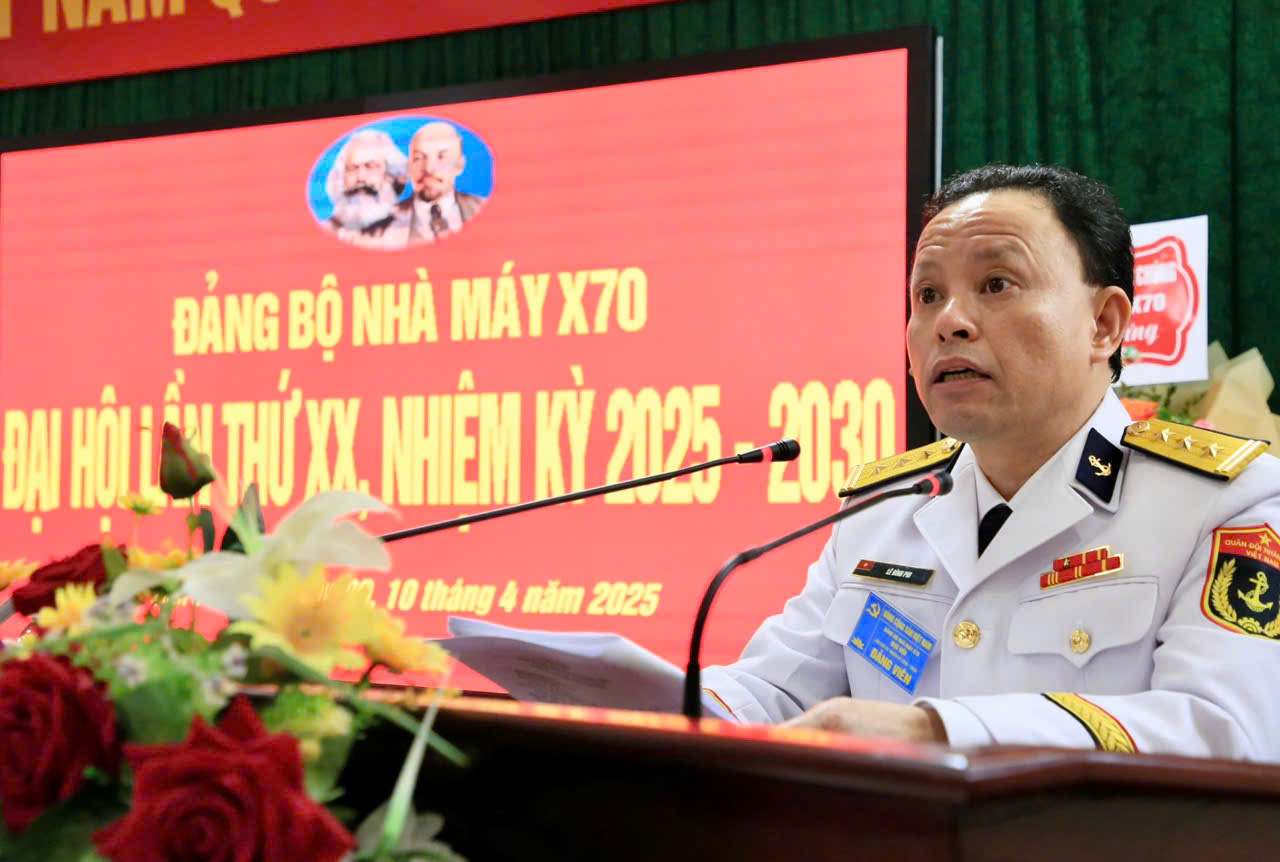 Phát biểu chỉ đạo đại hội, Đại tá Phạm Kim Tuyến nhấn mạnh: Nhà máy X70 có bề dày truyền thống và có nhiệm vụ đặc thù trong khối nhà máy của Quân chủng. Những năm qua, Đảng bộ Nhà máy đã lãnh đạo đơn vị hoàn thành tốt các chỉ tiêu, nhiệm vụ; hàng năm được khen thưởng các cấp...
