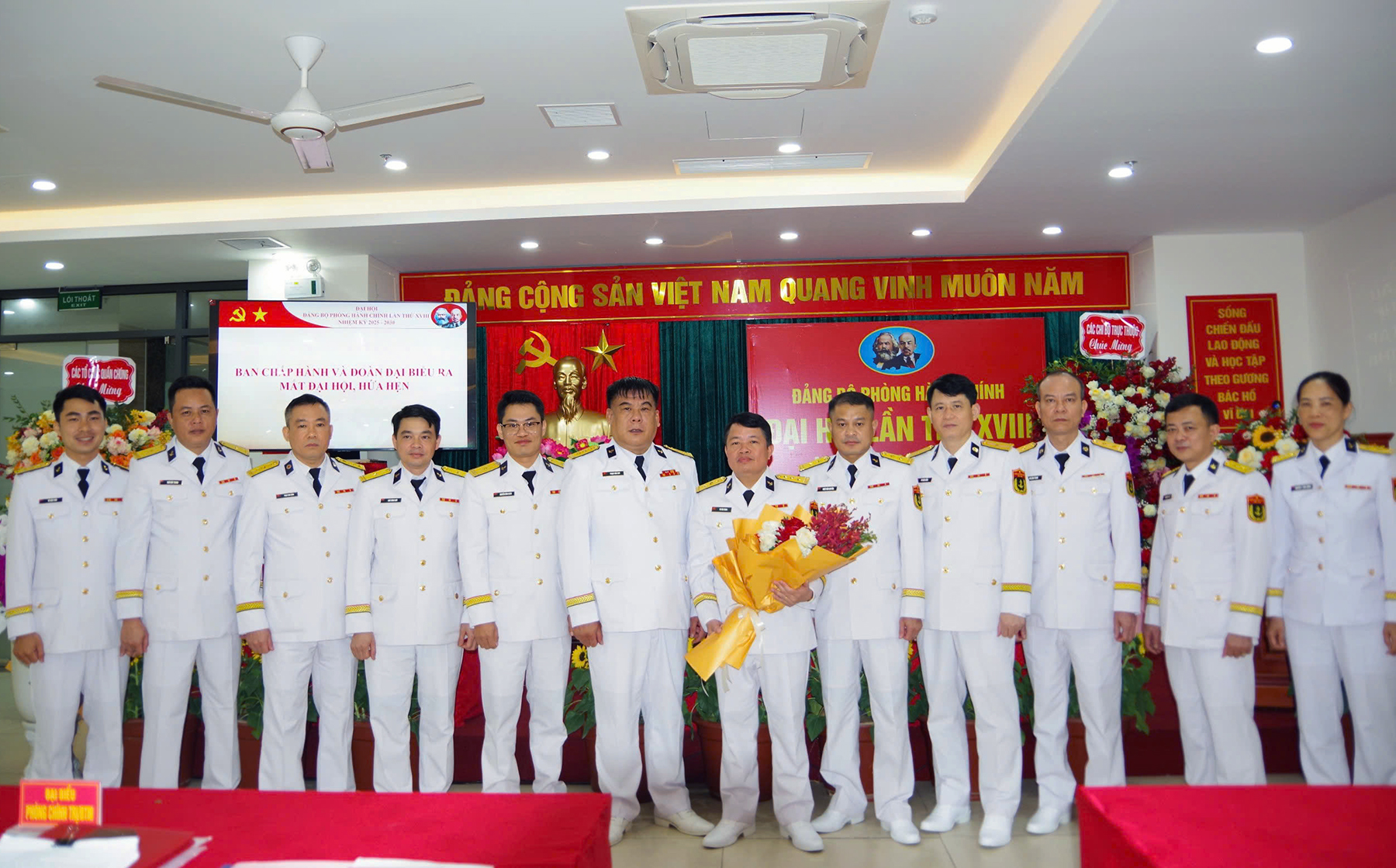 Ban chấp hành Đảng bộ Phòng Hành chính nhiệm kỳ 2025 - 2030 và các đại biểu dự Đại hội đại biểu Đảng bộ Bộ Tham mưu lần thứ XII ra mắt đại hội