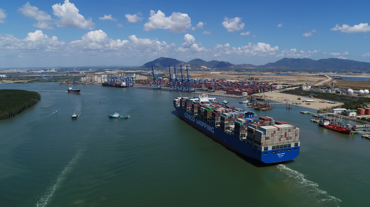 Cảng Quốc tế Tân cảng Cái Mép đón tàu 132 nghìn tấn đi thẳng tới châu Âu và Mỹ. Ảnh: CTV