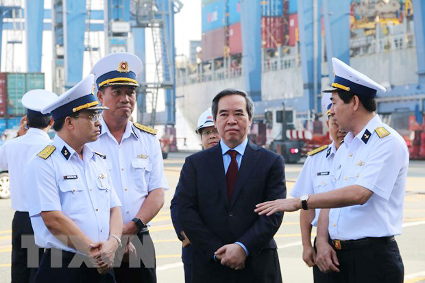 Trưởng Ban Kinh tế Trung ương Nguyễn Văn Bình thăm và làm việc tại cảng Tân Cảng Cát Lái - Tổng công ty Tân Cảng Sài Gòn. Ảnh: CTV
