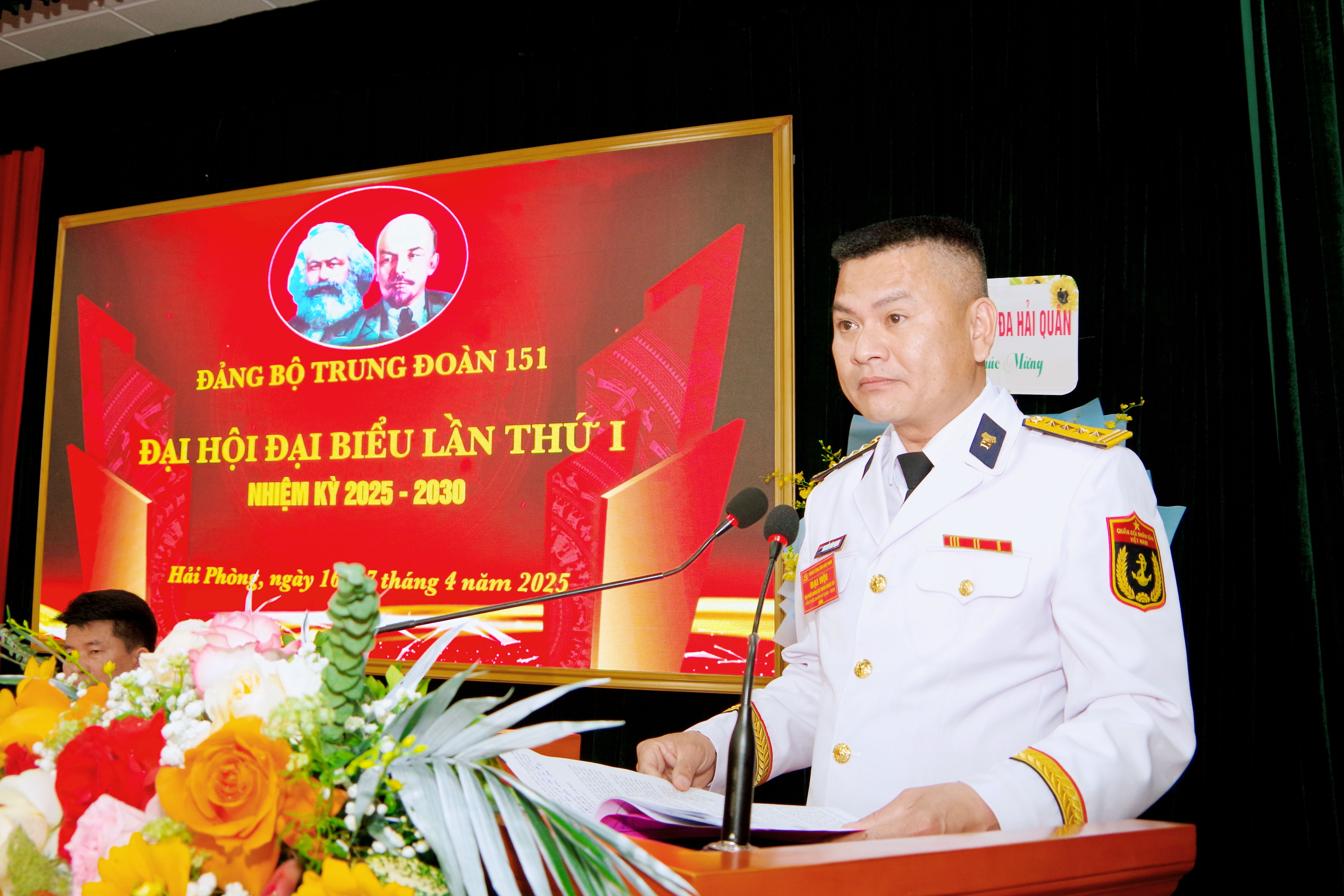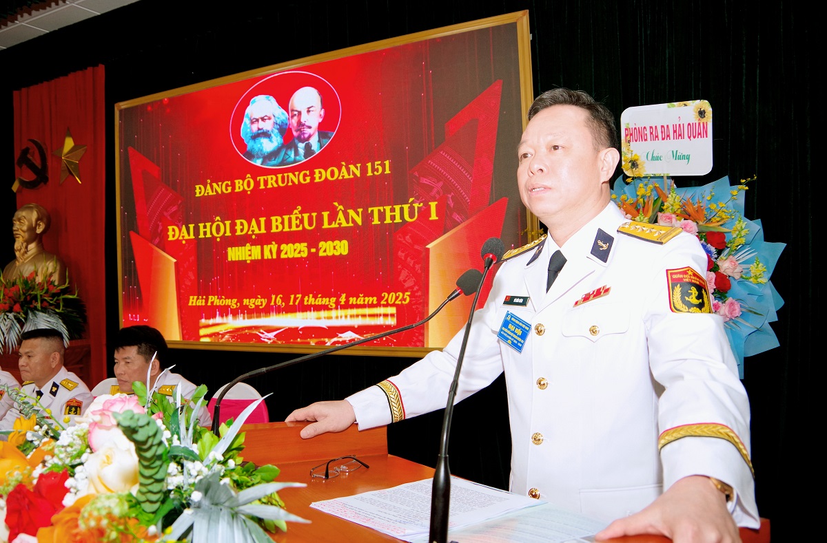Ngày 16 và 17/4, tại Hải Phòng, Đảng bộ Trung đoàn 151, Vùng 1 Hải quân tổ chức Đại hội đại biểu lần thứ I nhiệm kỳ 2025-2030. Đại tá Vũ Hữu Kiêm, Phó Chính ủy Vùng 1 dự và chỉ đạo; dự đại hội còn có đại biểu cơ quan tham mưu, chính trị, hậu cần - kỹ thuật Bộ Tư lệnh Vùng 1, cùng 91 đại biểu trong toàn Đảng bộ Trung đoàn.