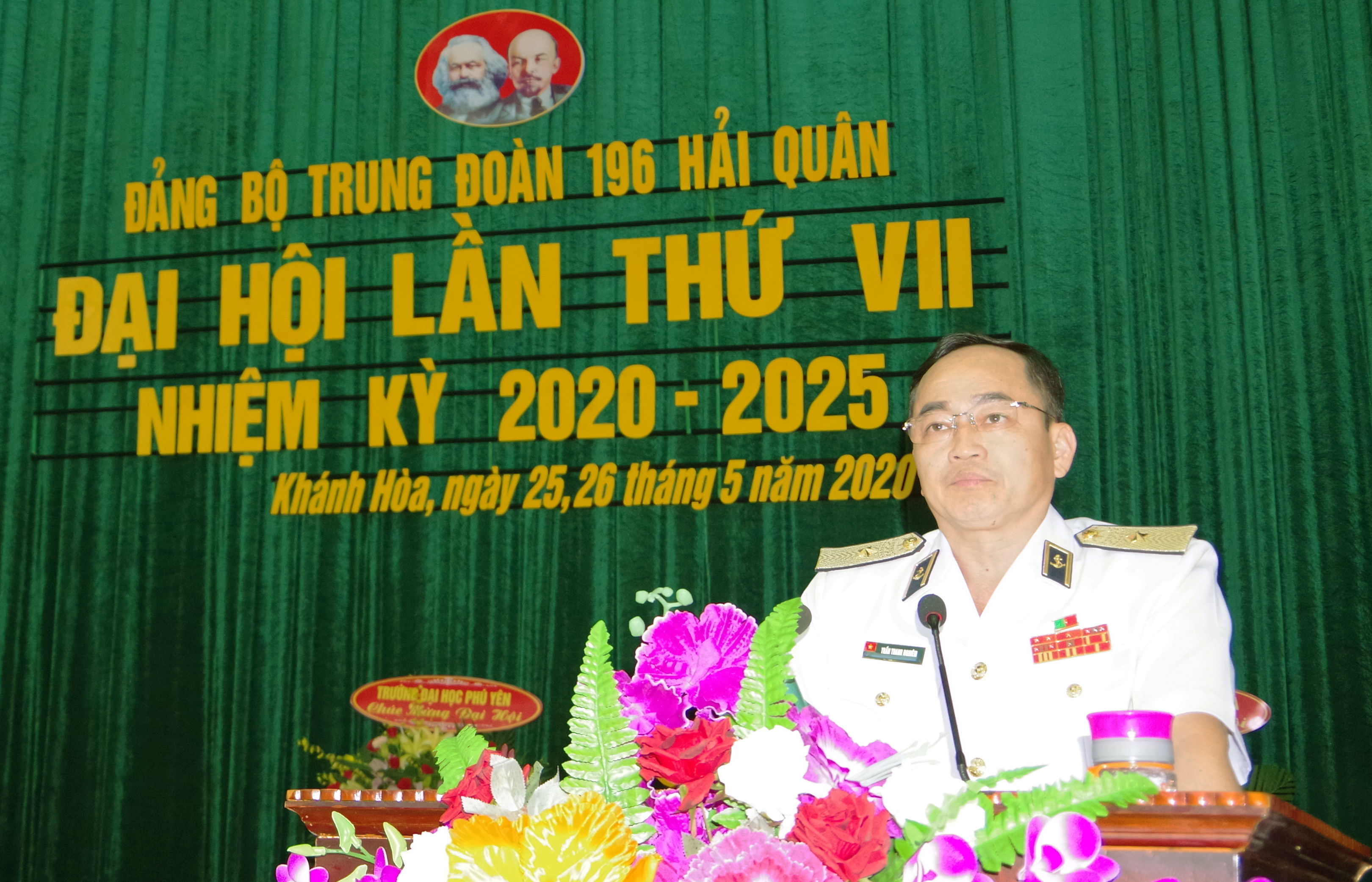 Phát biểu chỉ đạo đại hội, Chuẩn Đô đốc Trần Thanh Nghiêm ghi nhận và đánh giá cao kết quả lãnh đạo thực hiện nhiệm của Đảng bộ Trung đoàn 196 trong nhiệm kỳ qua đồng thời yêu cầu đại hội thảo luận, phân tích làm rõ những nguyên nhân hạn chế, khuyết điểm để tìm ra giải pháp phù hợp nhằm triển khai thực hiện tốt nhiệm vụ trong thời gian tới.