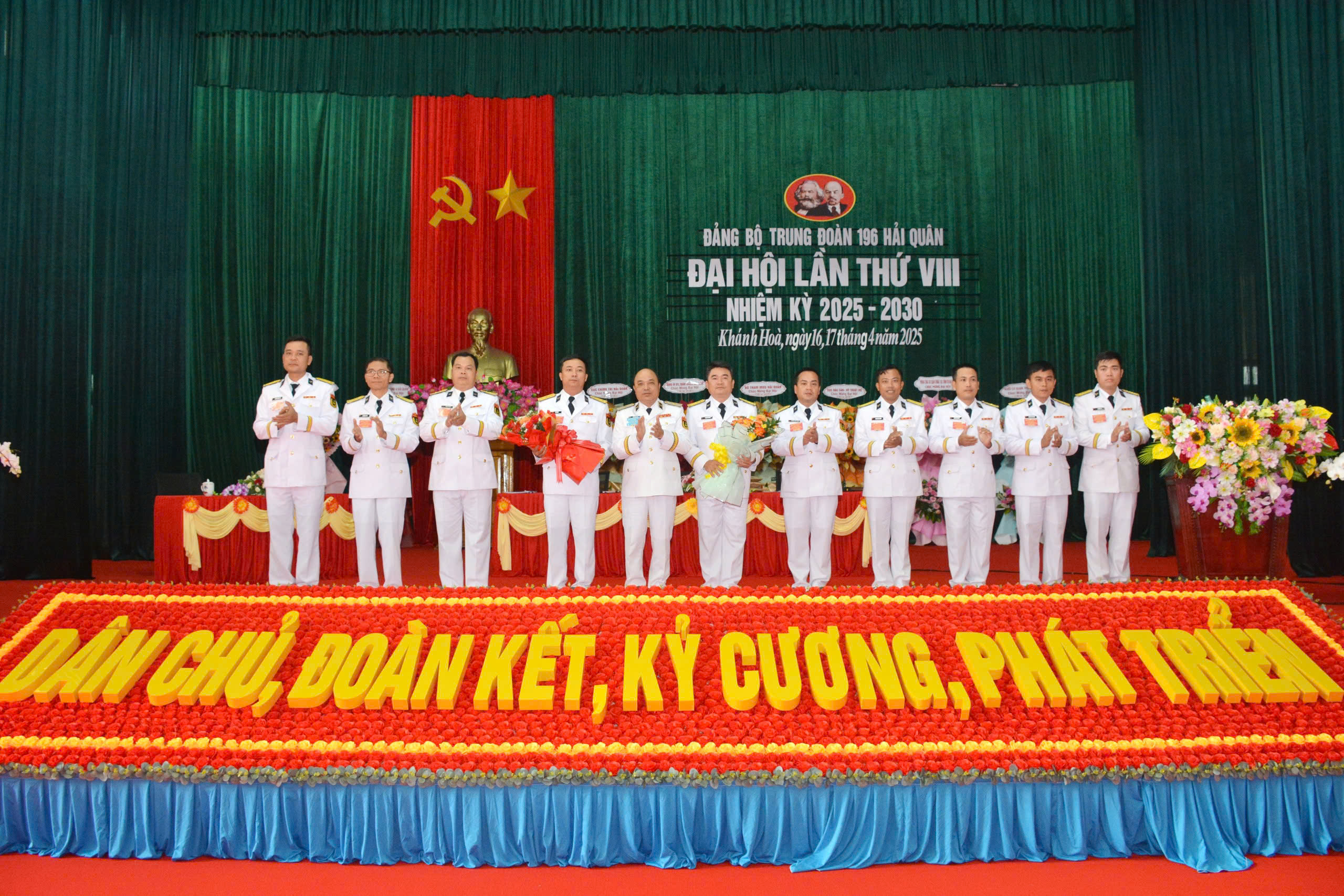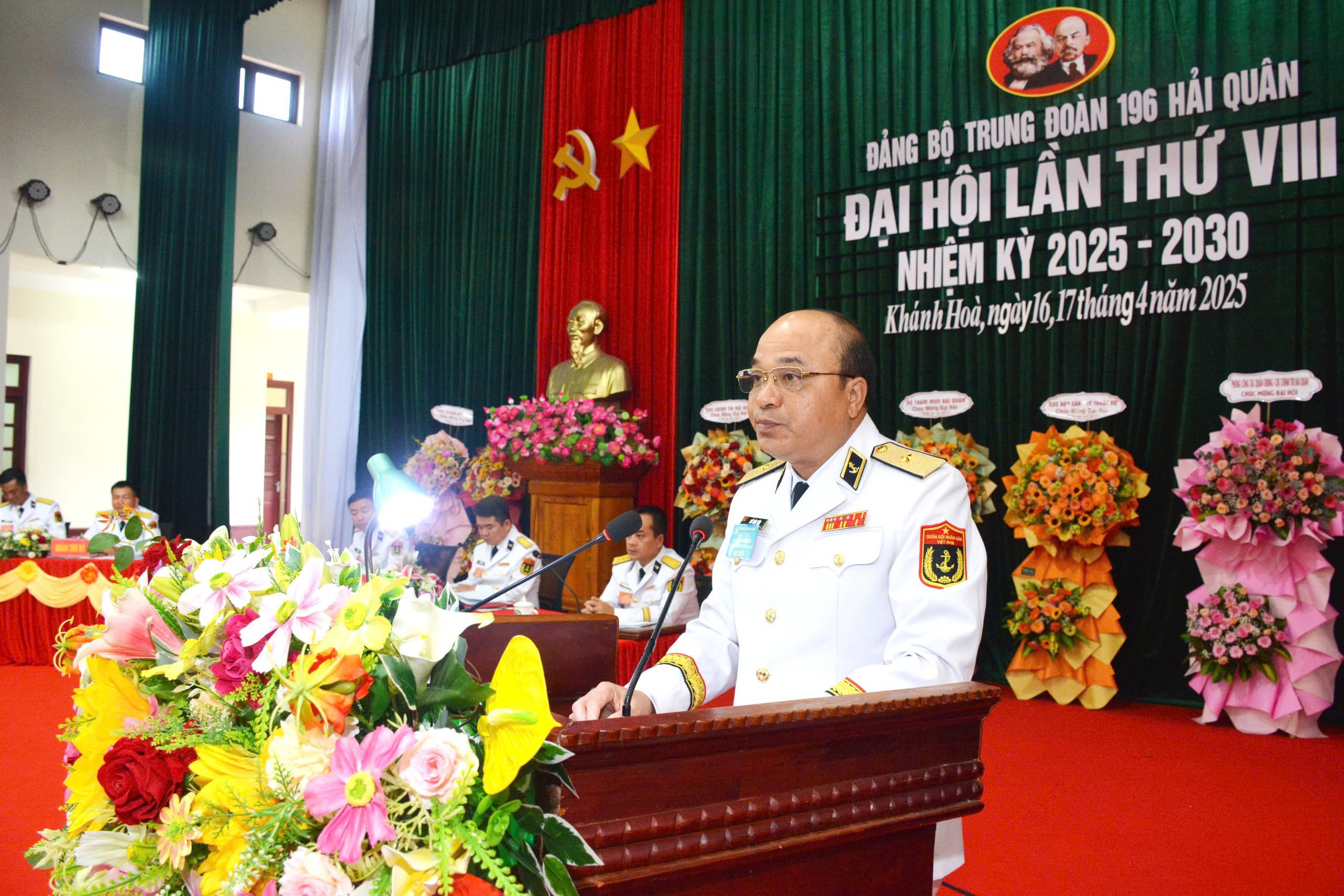 Đồng chí Phó chính ủy Hải quân yêu cầu nhiệm kỳ tới, Đảng bộ Trung đoàn 196 cần quán triệt cụ thể hóa các chủ trương, giải pháp thực hiện nghị quyết của cấp trên phù hợp với điều kiện đơn vị; duy trì nghiêm chế độ huấn luyện, sẵn sàng chiến đấu; đẩy mạnh nghiên cứu sáng kiến, cải tiến kỹ thuật, khả năng tự chủ vật tư đặc chủng; xây dựng Trung đoàn có tổ chức tinh, gọn, mạnh, chỉ huy toàn diện, hiệu lực, hiệu quả, công nghệ số, có sức mạnh chiến đấu cao. Xây dựng Đảng bộ vững mạnh về chính trị, tư tưởng, đạo đức, tổ chức và cán bộ, đạt trong sạch vững mạnh, mẫu mực, tiêu biểu.