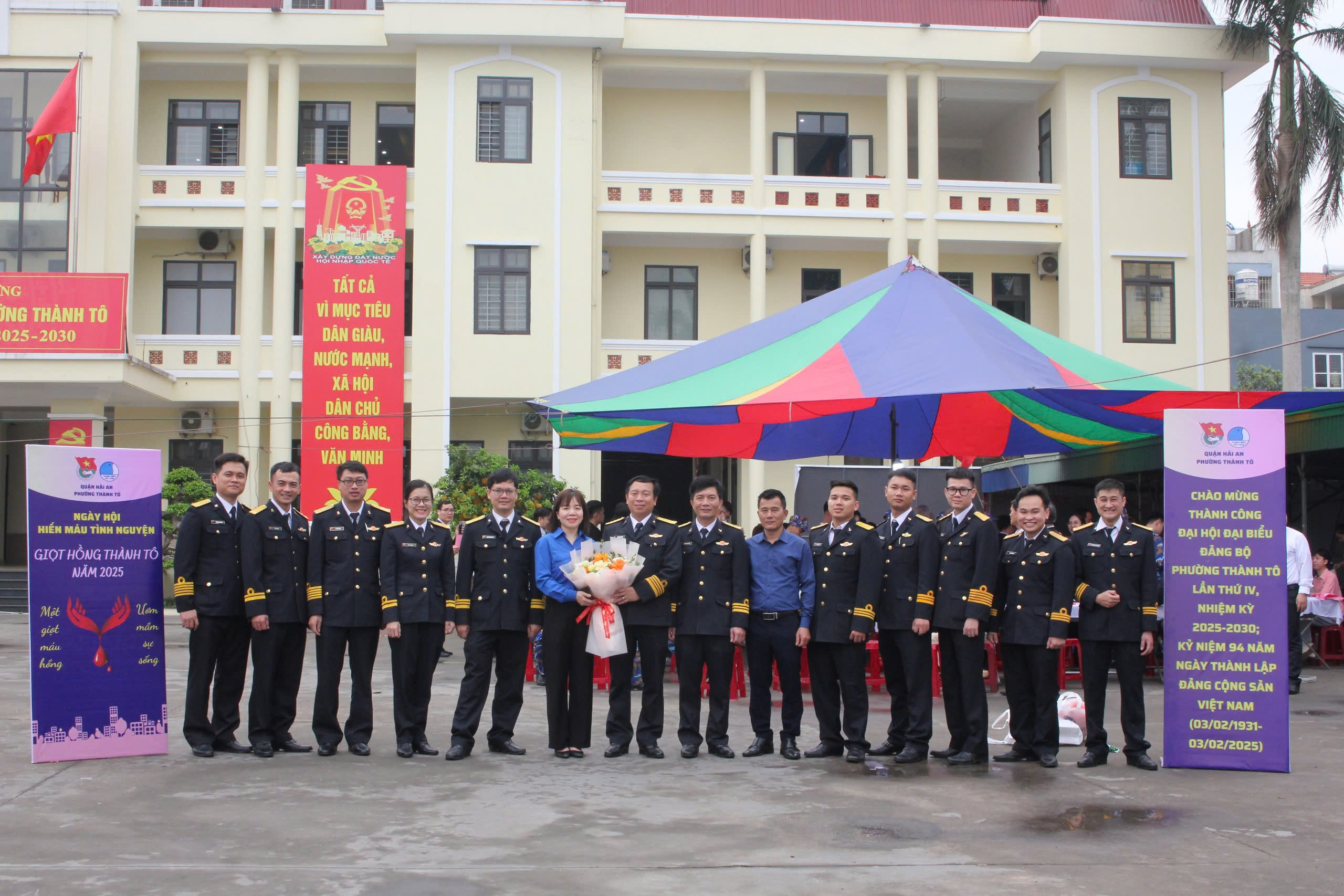 Thượng tá Trần Văn Toàn tặng hoa đơn vị kết nghĩa tại chương trình hiến máu tình nguyện