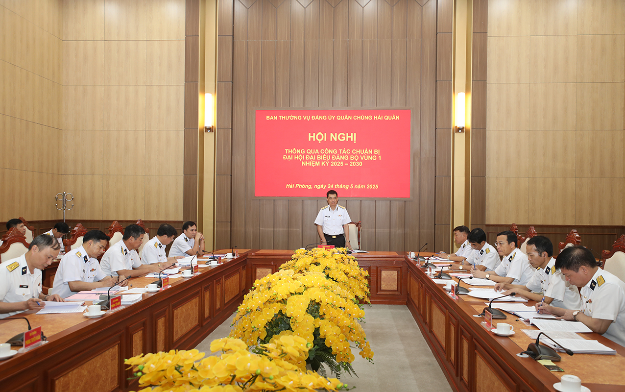 Sáng 24/5 tại Hải Phòng, Ban Thường vụ Đảng uỷ Quân chủng Hải quân tổ chức thông qua công tác chuẩn bị tổ chức Đại hội đại biểu Đảng bộ Vùng 1 Hải quân lần thứ XIII, nhiệm kỳ 2025-2030. Thiếu tướng Nguyễn An Phong, Bí thư Đảng uỷ, Chính uỷ Quân chủng chủ trì.