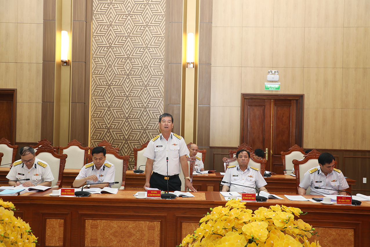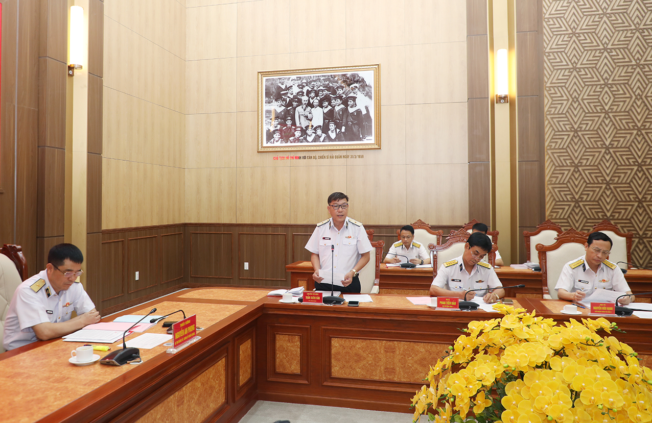 Chuẩn Đô đốc Trần Xuân Văn, Bí thư Đảng ủy, Chính ủy Vùng 1 Hải quân báo cáo công tác chuẩn bị Đại hội đại biểu Đảng bộ Vùng 1 lần thứ XIII gồm các nội dung: kết quả đại hội cấp chi bộ, đảng bộ bộ phận, đảng bộ cơ sở trực thuộc; công tác chuẩn bị văn kiện, nhân sự; phương án điều hành đại hội; chuẩn bị các ý kiến thảo luận cho các văn kiện của Trung ương, Đảng ủy Quân chủng và Đảng ủy Vùng 1; công tác thi đua, tuyên truyền và xây dựng công trình chào mừng đại hội và một số mặt công tác bảo đảm khác.