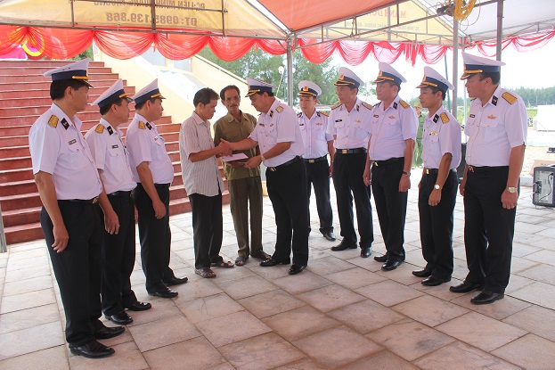 Phó Đô đốc Đinh Gia Thật tặng quà cho 2 gia đình liệt sĩ đã hy sinh trong chiến thắng trận đầu