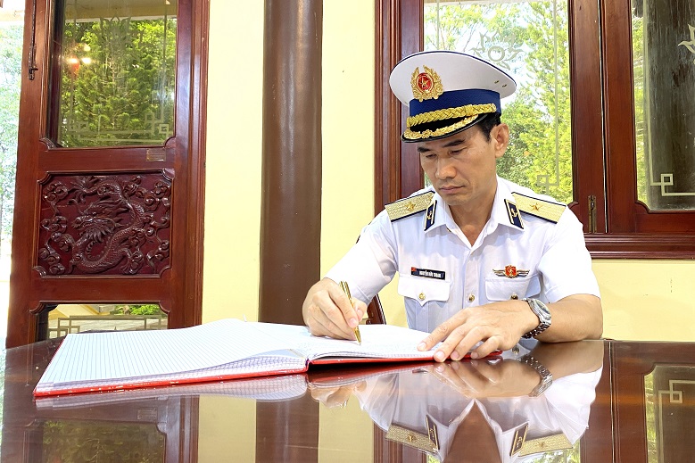 Chuẩn Đô đốc Nguyễn Hữu Thoan ghi sổ lưu niệm