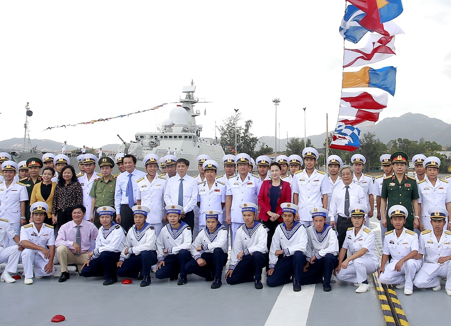 Chủ tịch Quốc hội Nguyễn Thị Kim Ngân với cán bộ, chiến sĩ Tàu 012- Lý Thái Tổ. Ảnh: Đức Thu
