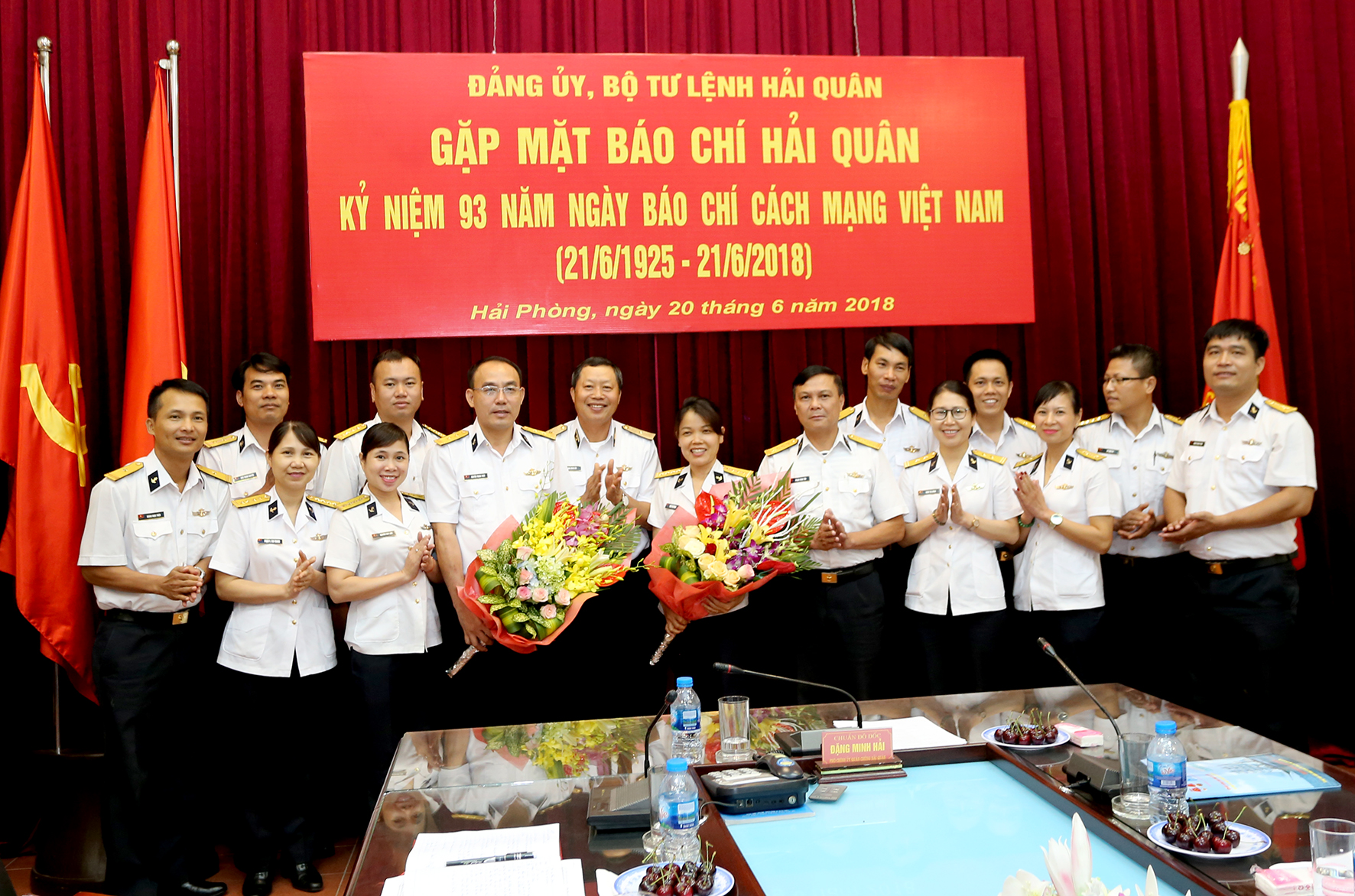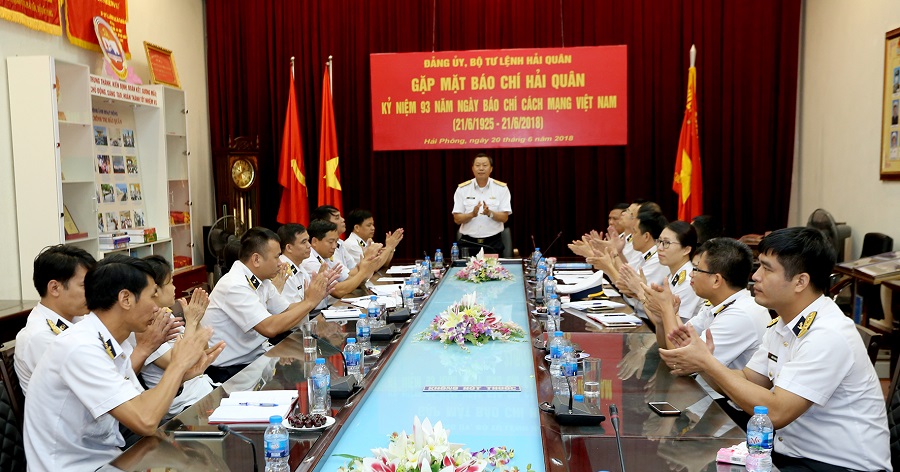 Sáng 20-6, tại Hải Phòng, Đảng ủy, Bộ Tư lệnh Hải quân tổ chức gặp mặt cán bộ, phóng viên Báo và Tạp chí Hải quân nhân dịp kỷ niệm 93 năm Ngày Báo chí Cách mạng Việt Nam (21-6-1925 – 21-6-2018). Chuẩn Đô đốc Đặng Minh Hải, Ủy viên Thường vụ Đảng ủy Quân chủng, Phó Chính ủy Hải quân chủ trì buổi gặp mặt.