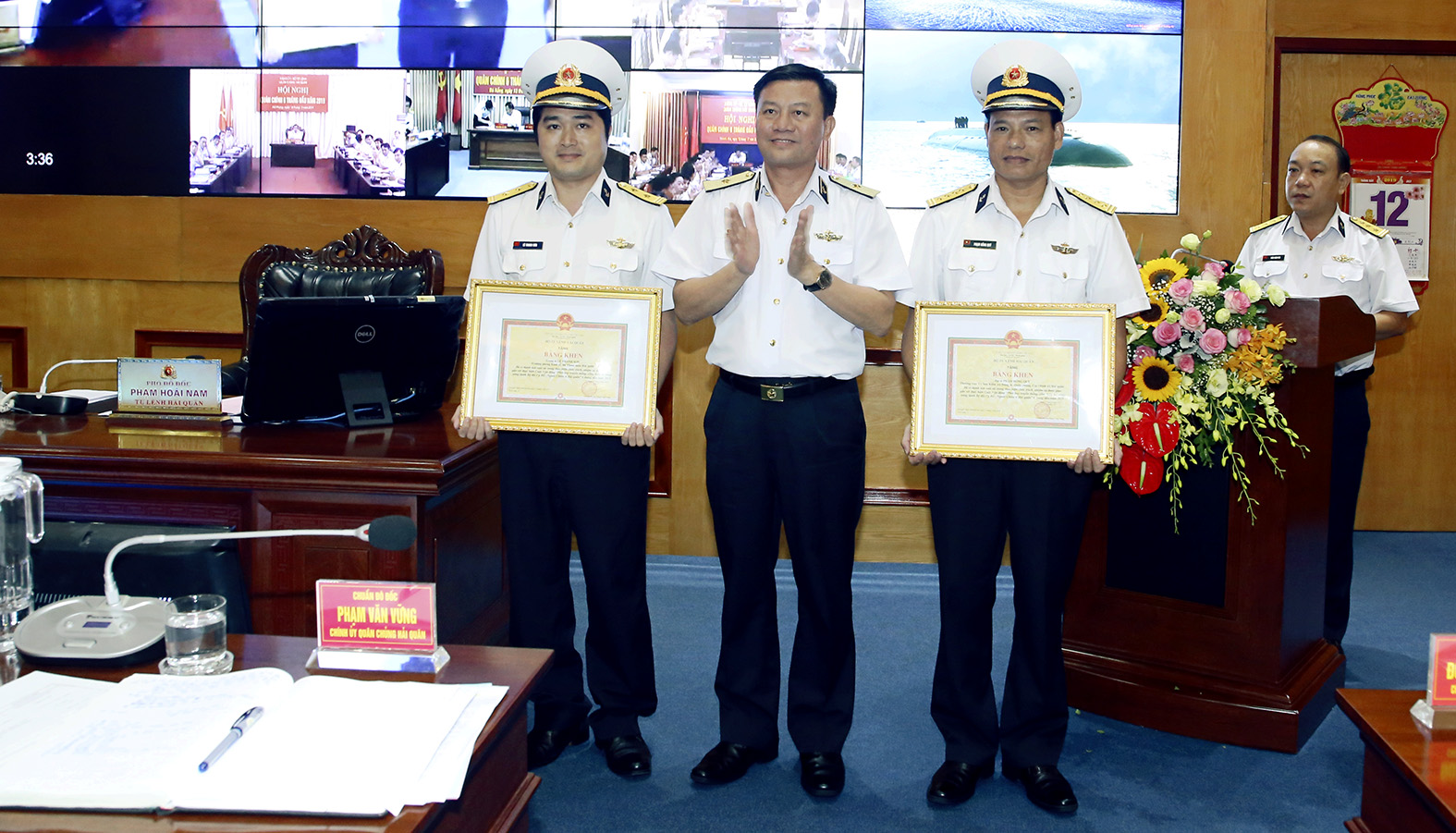 Tại hội nghị, Chính ủy Hải quân đã tặng Bằng khen cho 2 cá nhân có thành tích xuất sắc trong thực hiện chức trách, nhiệm vụ gắn với thực hiện Cuộc vận động “Phát huy truyền thống, cống hiến tài năng, xứng danh Bộ đội Cụ Hồ-Người chiến sĩ Hải quân”.