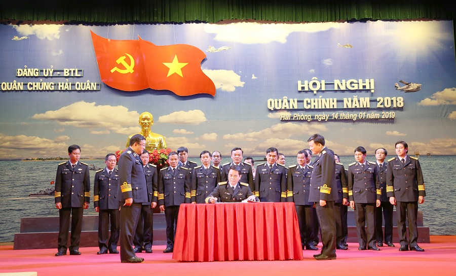 Chiều cùng ngày, Chuẩn Đô đốc Phạm Văn Vững, Bí thư Đảng ủy, Chính ủy Hải quân, Chủ tịch Hội đồng Thi đua-Khen thưởng Quân chủng đã tổng kết phong trào thi đua Quyết thắng năm 2018 và phát động phong trào thi đua Quyết thắng năm 2019.