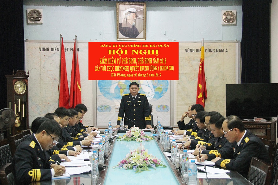 Chiều 20-2, tại Hải Phòng, Đảng ủy Cục Chính trị Hải quân tổ chức Hội nghị kiểm điểm tự phê bình, phê bình gắn với thực hiện Nghị quyết Trung ương 4 (khóa XII) về tăng cường xây dựng, chỉnh đốn Đảng. Chuẩn Đô đốc Phạm Văn Vững, Ủy viên Thường vụ Đảng ủy Quân chủng, Chủ nhiệm Chính trị Hải quân dự hội nghị; Đại tá Nguyễn Tuý, Phó Chủ nhiệm Chính trị Hải quân, Bí thư Đảng uỷ Cục Chính trị chủ trì hội nghị.