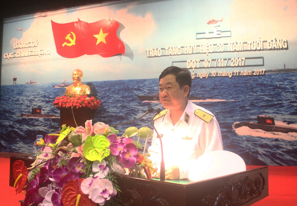 Phát biểu tại buổi lễ, Chuẩn Đô đốc Đoàn Văn Chiều chúc mừng các đồng chí được trao tặng Huy hiệu 30 năm tuổi Đảng đợt này. Đây là sự cố gắng, phấn đấu không ngừng nghỉ và là niềm vinh dự của mỗi cá nhân, đồng thời cũng là niềm tự hào của toàn Đảng bộ Cục Chính trị. Đồng chí mong rằng các đồng chí được trao Huy hiệu sẽ tiếp tục là những tấm gương tiêu biểu để thế hệ đảng viên trẻ trong toàn Cục học tập và noi theo.